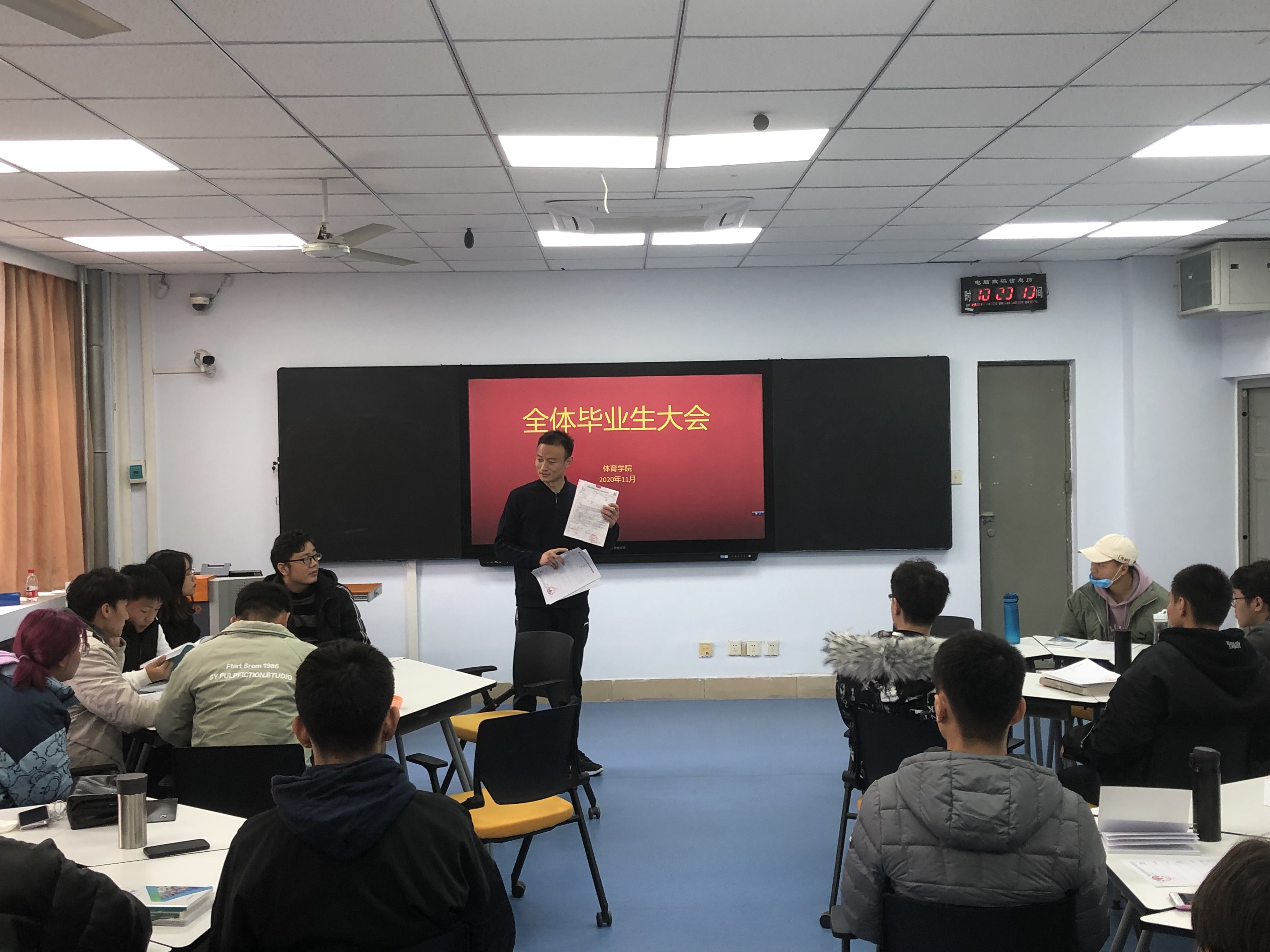 11月27日,体育学院在东风校区教三楼211召开2021届毕业生大会,体育学院负责就业创业工作辅导员石庆福老师以及2021届全体毕业生参加了此次会议。