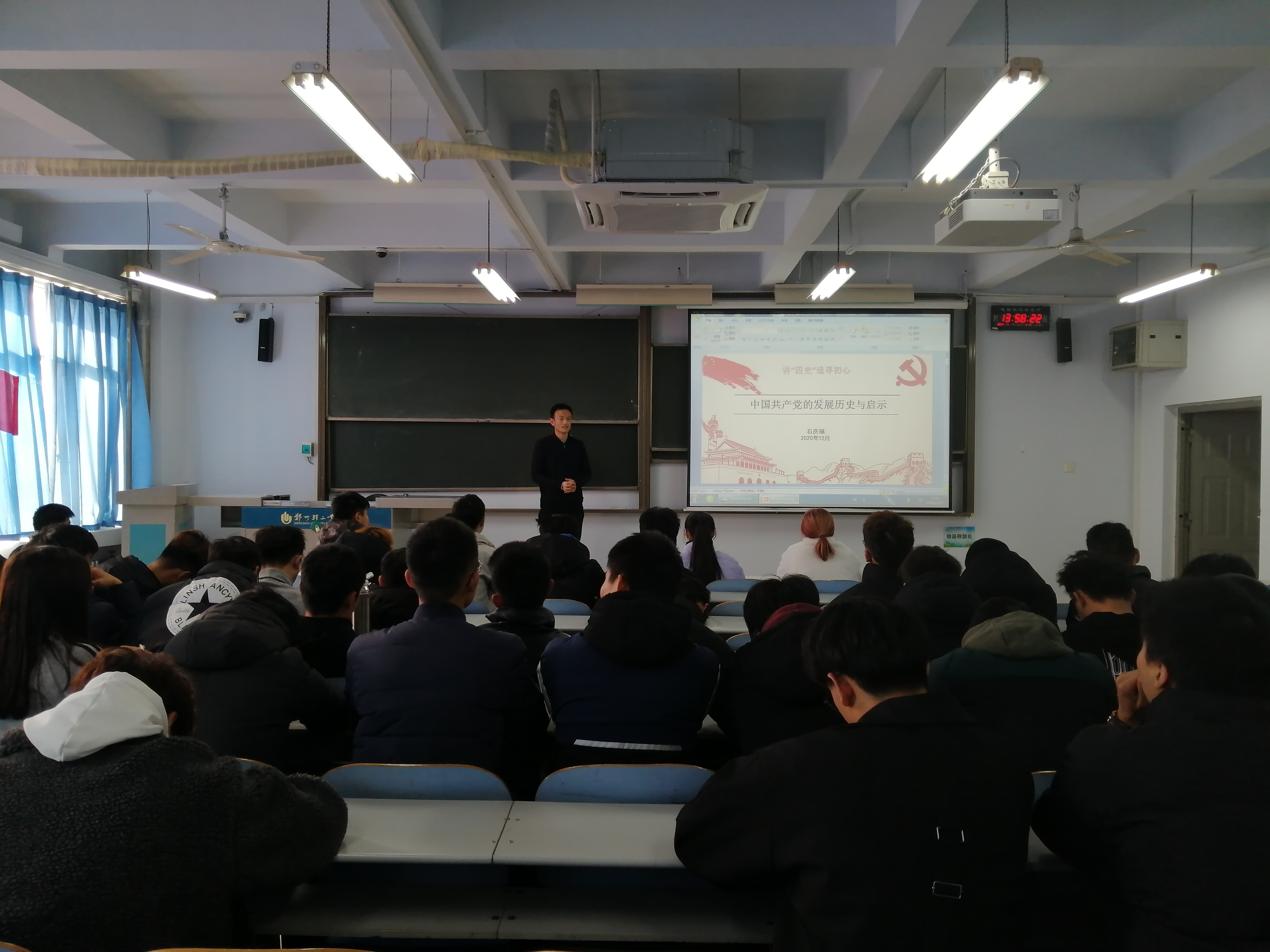 活动中,石老师以“中国共产党的历史与启示”为题,从中国共产党建立的历史背景、发展历程、思想基础、历史意义和给我们的启示等五个方面进行讲解。石老师结合党的发展历史和启示,鼓励广大青年学子要珍惜在校学习的时光,努力打好各方面的基础,坚定理想信念,以攻坚克难的决心砥砺前行,做新时代的“筑梦者”和“奋斗者”,努力为实现中华民族伟大复兴的中国梦贡献青春力量,做一名合格新青年和党的后备军。讲课结束后,在场的同学们纷纷发言,表示一定认真追寻历史足迹,感悟家国情怀,弘扬革命精神,努力在“四史”中汲取营养,在未来学习生活中砥砺前行。