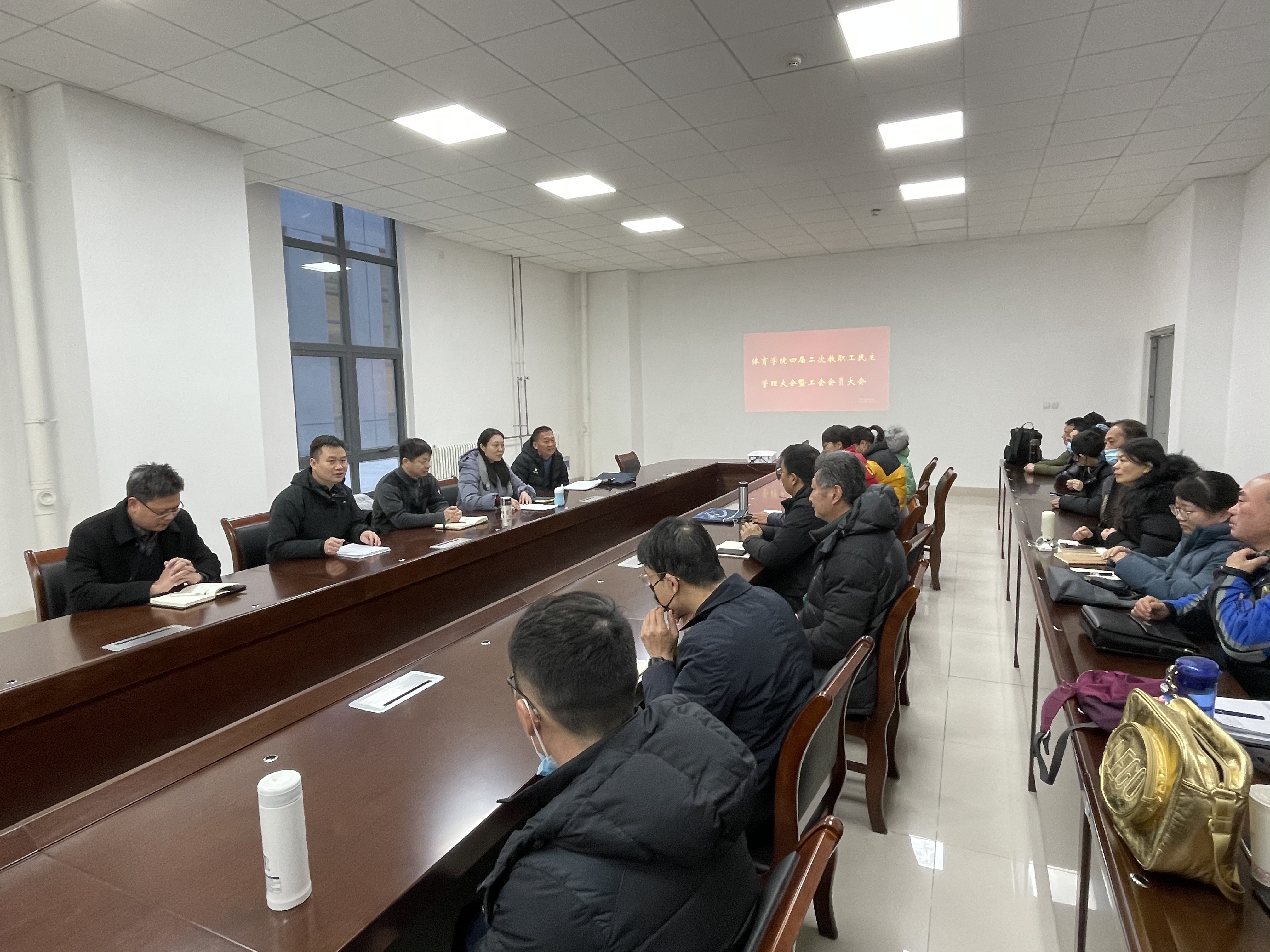 1月7日上午,体育学院在科学校区体育馆会议室召开四届二次教职工民主管理大会暨工会会员大会,学院全体教职工参加大会。会议由学院工会主席谭俊超主持。