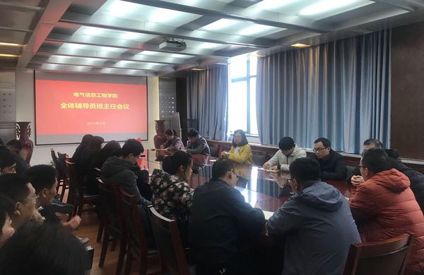 3月11日下午,电气信息工程学院在西二楼301会议室召开全体辅导员、班主任工作会议。学院党委副书记万慧杰、全体辅导员和班主任老师参加了会议。