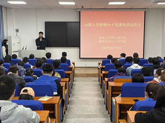为进一步加强对入党积极分子的教育和培养,提高党员发展质量,3月15日中午13点,食品与生物工程学院(烟草科学与工程学院)在食工楼209室召开第65期入党积极分子党课培训动员大会。学院负责党务工作的何春雨老师、本期党课培训班全体学员参加了本次会议。