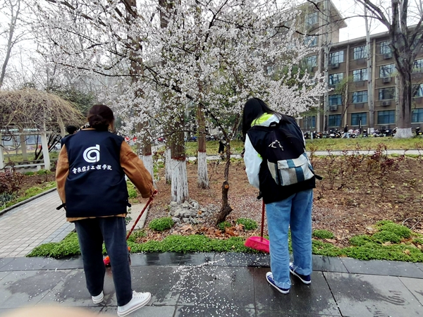 在春暖花开、热情洋溢的阳春三月里,为进一步推动学雷锋活动的深入开展,弘扬中华民族传统美德,电气信息工程学院“阳光电气”2020级志愿者开展“学雷锋 清校园 扬文明”主题志愿服务活动。