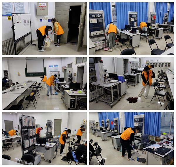 活动过程中,志愿者们分成若干小组,有的拿着扫把,有的拿着拖把,有的负责清理垃圾......亮黄色的背心穿在志愿者身上,就像是一团团热烈而又温暖的火苗,他们身影忙碌,但他们的眼睛中却始终带着亮光,动作娴熟,干劲满满,如初春时节那冒出头的树苗,生机盎然。因为考虑到地点是在实验室中,还有很多同学在认真学习,所以志愿者们在劳动时也小心翼翼,整洁而又有序,忙碌却不嘈杂。