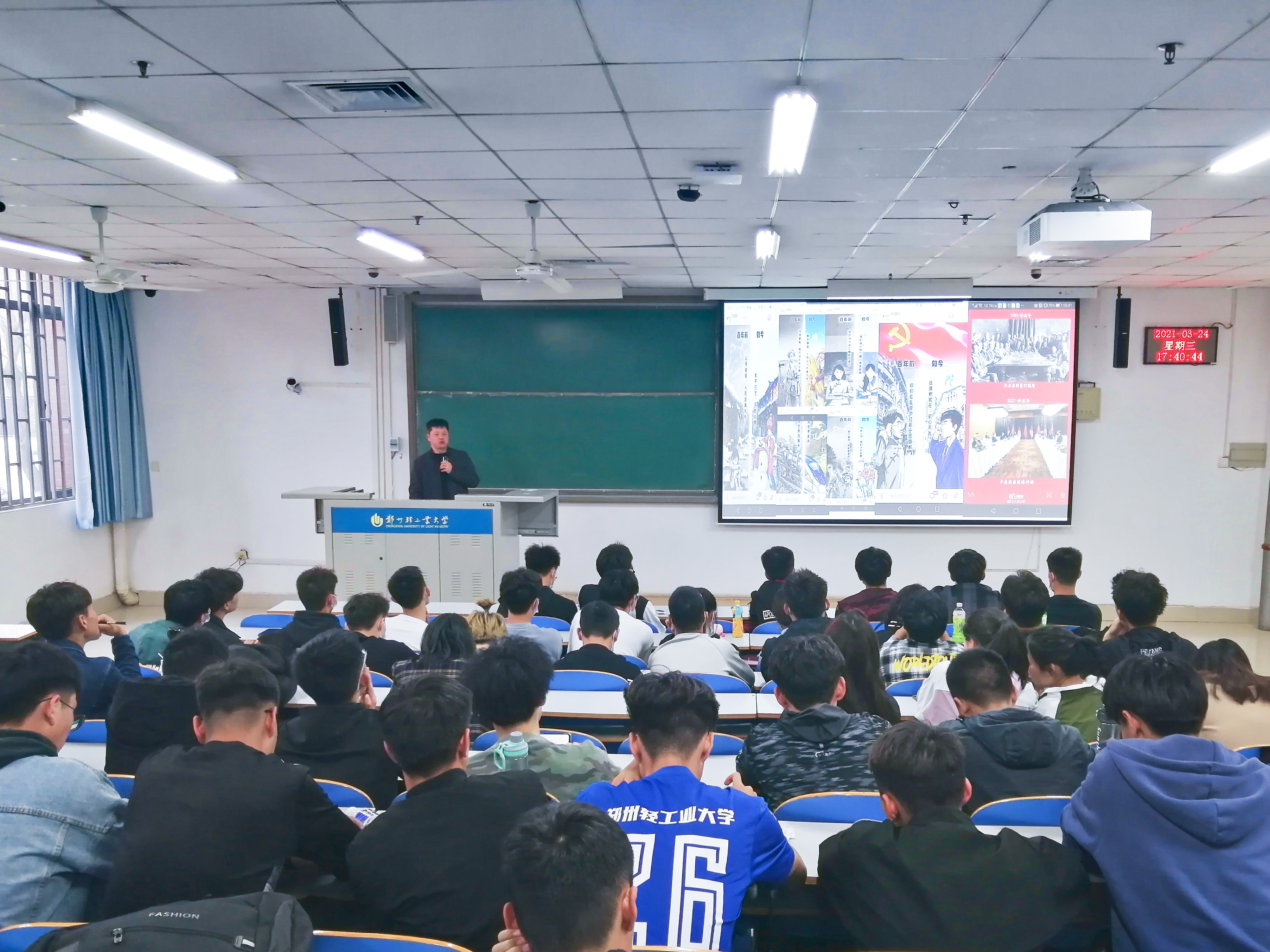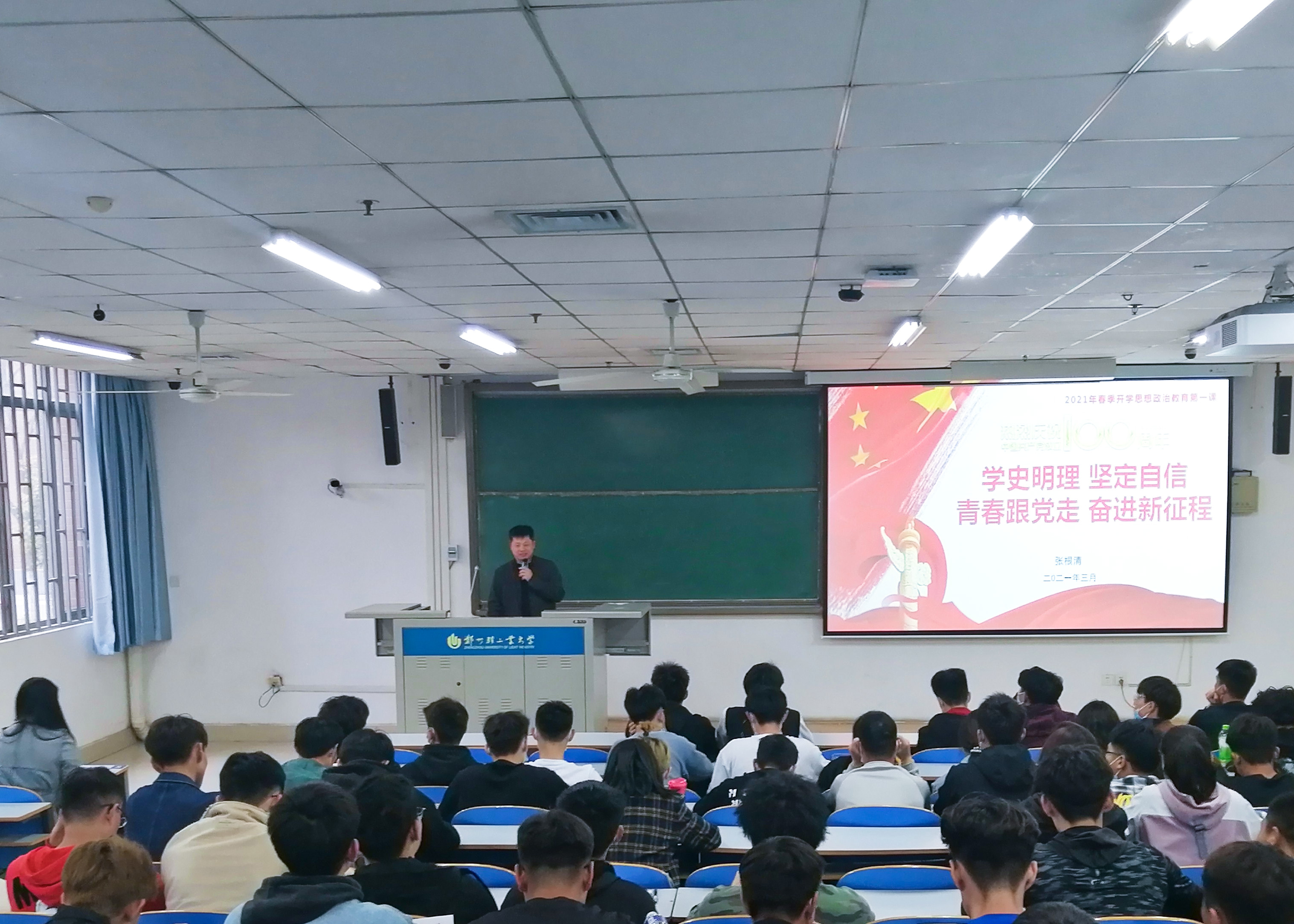 课上,张书记围绕“学史明理,坚定自信”“青春跟党走 奋进新征程”的主题,从党在新时代面临的挑战与取得的成就、回顾党的百年奋斗史、党的百年光辉历程带来深刻启示等三个方面,讲述了集中开展党史学习教育的重要意义。结合对古今中外关系的对比,深刻阐述了社会主义集中力量办大事的制度优越性,并勉励同学们要从党史学习教育中汲取努力奋斗的智慧和力量,提高责任意识和担当意识,厚植爱国情怀,坚定“四个自信”,提高政治站位,扩大思想格局,为民族伟大复兴绽放青春的力量。