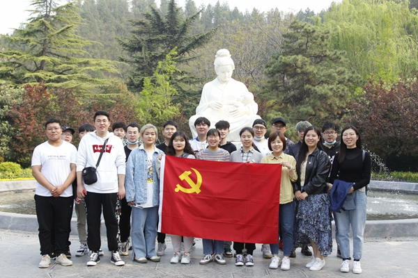 时值暖春,微风和煦,在支部老师们的带领下,大家首先来到了黄河边岸,面对中华民族的母亲河,无一不沉浸于黄河独特魅力之余感受其所蕴含的生生不息的活力。在此进行了庄严的党的宣誓之后,紧接着,来到了黄河国家地址博物馆,感受黄河文化,体会黄河精神,在过去的这百年峥嵘岁月里,黄河精神一直在支撑着我们党,我们中华民族不断前行。在看到“炎黄二帝”像时,大家齐齐惊叹,思绪纷飞,不禁沉思于黄河,中国共产党,中华民族之间的紧密联系。最后,大家在炎黄二帝像前进行合影留念,金黄色的党徽在胸前在晚阳的照耀下熠熠闪光。
