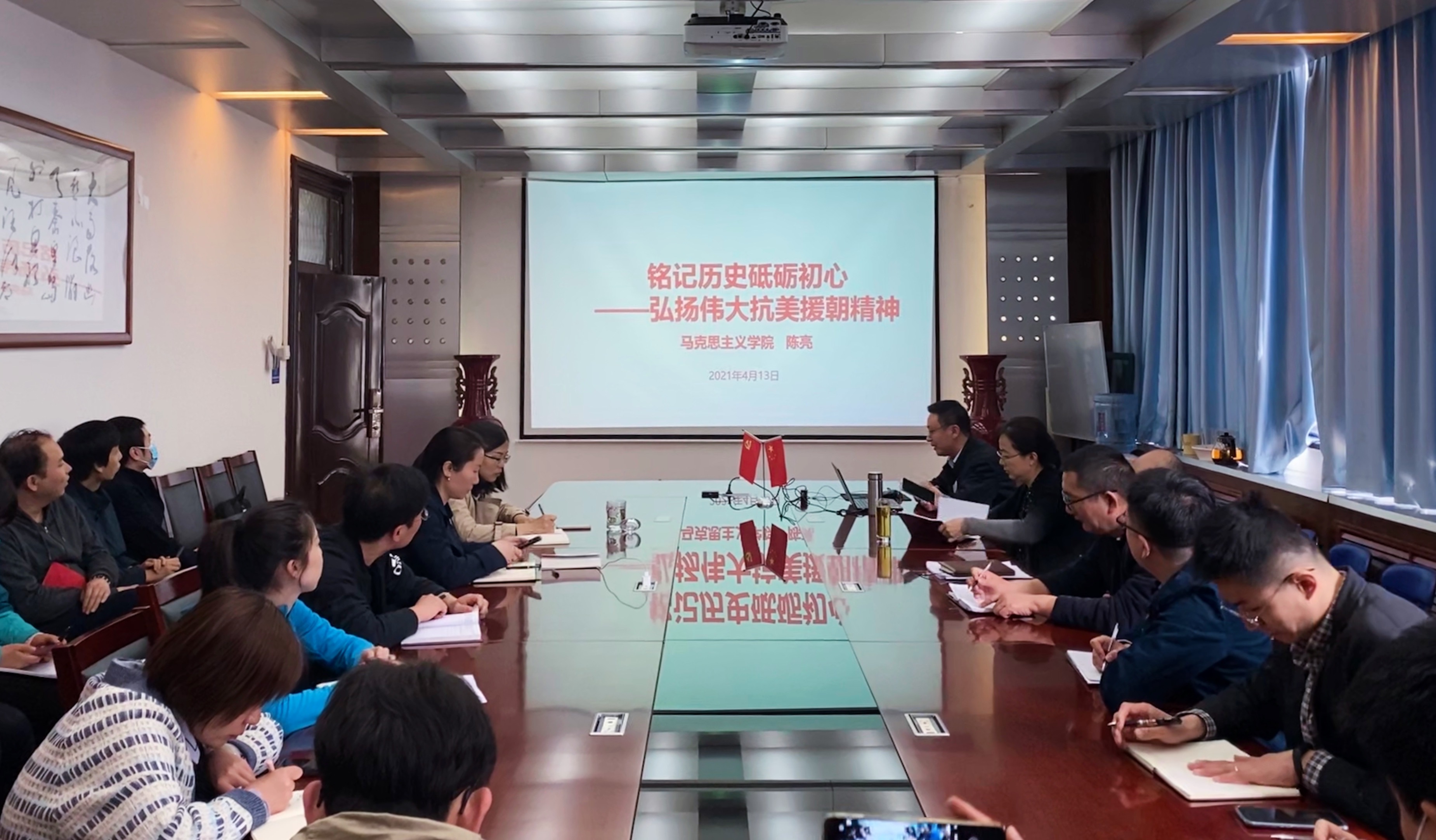 学习会邀请马克思主义学院中国近现代史纲要教研室主任陈亮博士作“铭记历史砥砺初心——弘扬伟大抗美援朝精神”主题报告。陈主任从抗美援朝出国作战的艰难抉择、立国之战的生死较量、中国人民志愿军可歌可泣的伟大精神三个方面系统阐述了抗美援朝战争的历史进程和时代意义。报告内容丰富,观点鲜明。参加学习的党员、干部对抗美援朝战争的光辉历程和宝贵经验有了更全面的了解,对爱国主义精神和革命英雄主义精神有了更真切的感悟,对中华民族不畏强暴、维护和平的坚定信心有了更深刻的认识。与会部分同志交流了个人学习体会。