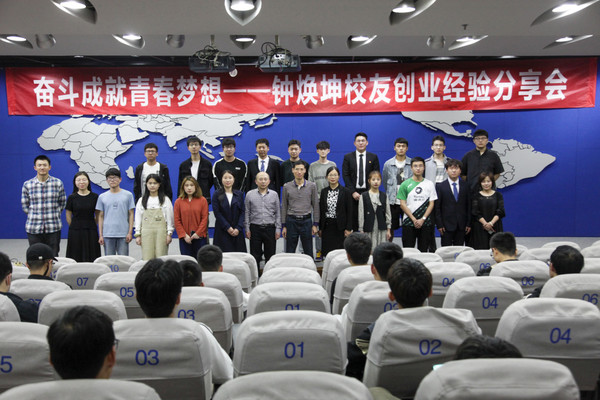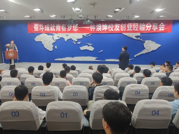 钟焕坤校友首先回顾了自己的创业经历,强调创业过程中要以诚信为本、保持乐观心态,抓住机遇、踏实务实。提醒同学们做好职业生涯规划,保持快速学习的能力,并以“一万小时工程师”鼓励同学们潜心提高专业素质能力,以“一分耕耘一分收获”激励同学们要脚踏实地、要仰望星空,以奋斗姿态实现青春梦想。最后,钟焕坤校友就同学们关心的创业团队组建、就业和升学相关问题进行认真解答。