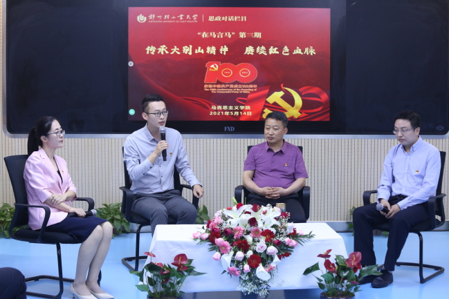 本期节目以“传承大别山精神 赓续红色血脉”为主题。此次节目邀请到信阳涉外职业技术学院马克思主义学院院长、新县县委宣讲团成员毛哲成副教授。“坚守信念、胸怀全局、团结奋进、勇当前锋”是大别山精神的内涵,毛老师以大量史实对大别山精神是如何形成、发展以及在当代如何赓续进行生动详细的阐释。马克思主义学院任润鑫博士、陈亮博士从红25军军史角度,对大别山精神的产生与发展作出解读。