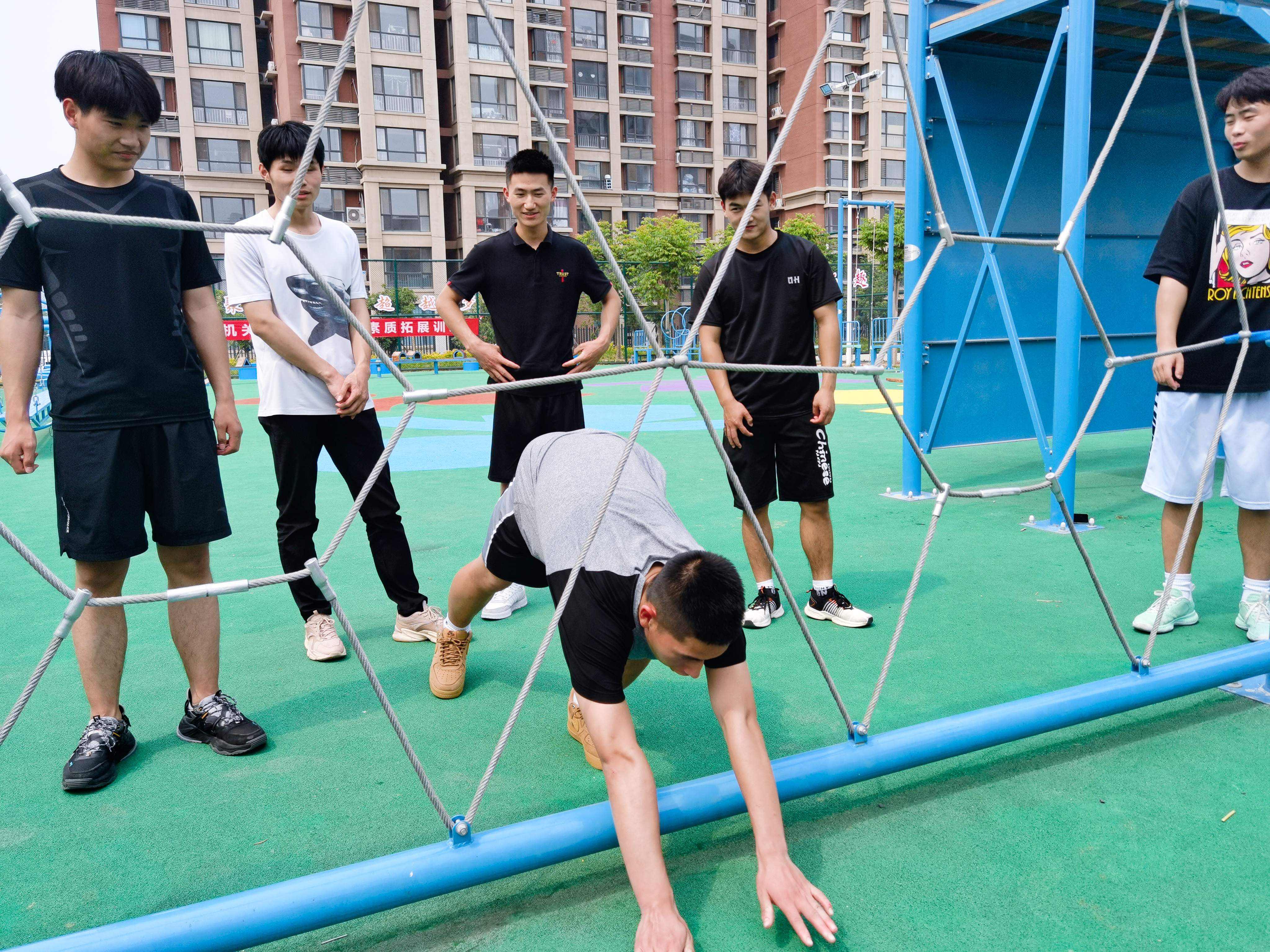活动伊始,陈老师逐一详细讲解了各训练项目的活动方案、活动目的和安全注意事项。随后,同学们在蒲公英使者的配合指导下体验完成了“模拟电网”、“礼让通行”、“携手并进”、“梅花桩”等多个项目。活动中,同学们相互熟悉、齐心协力、默契配合,努力攻克难关。项目完成后,大家积极展开讨论,并分享总结经验。整个氛围轻松欢快,同学们在拓展活动中缓解紧张和压力,锻炼团队合作能力,培养乐观积极的心态。