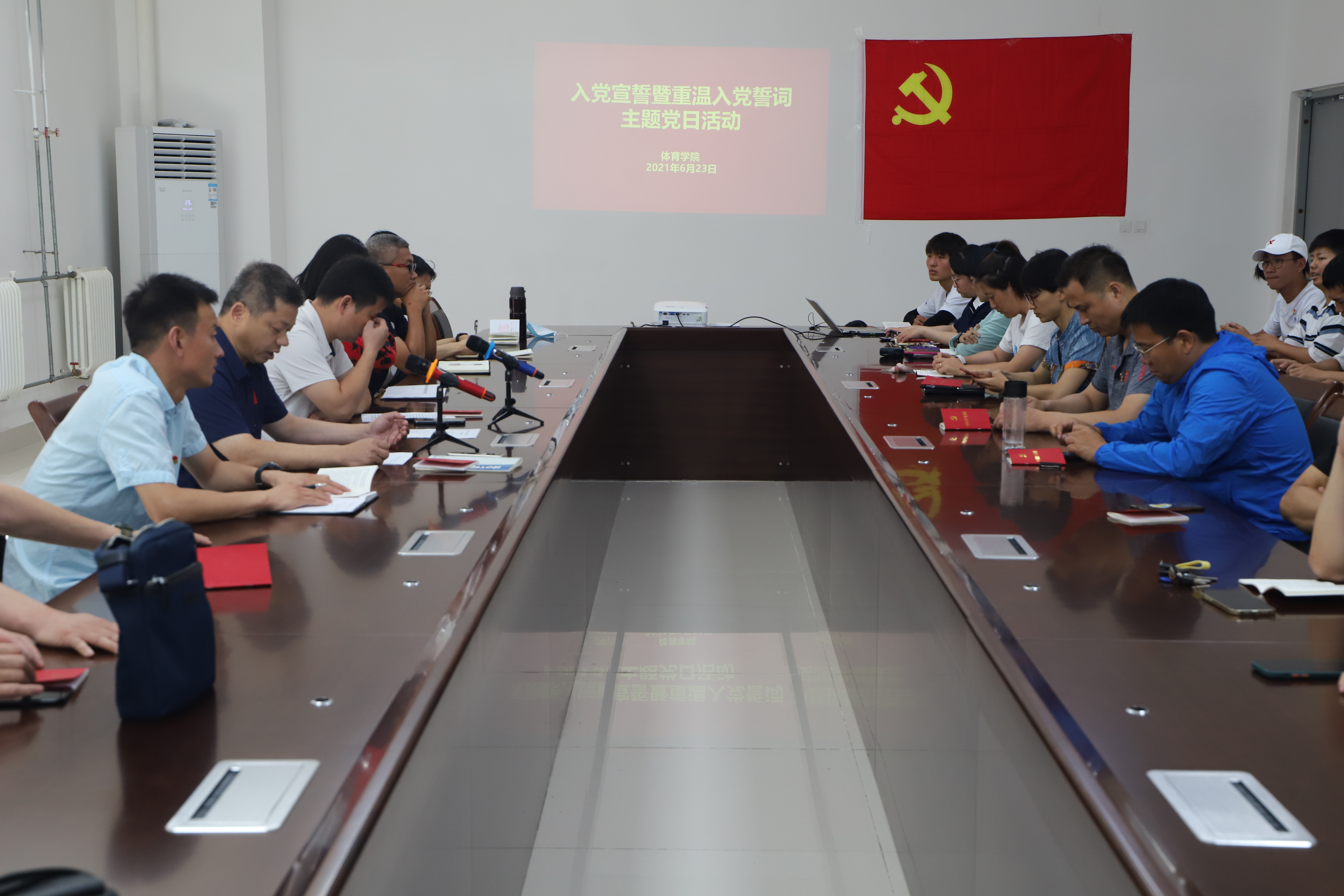6月23日,体育学院在科学校区体育馆会议室开展了入党宣誓暨重温入党誓词主题党日活动。体育学院全体师生党员参加了此次活动。