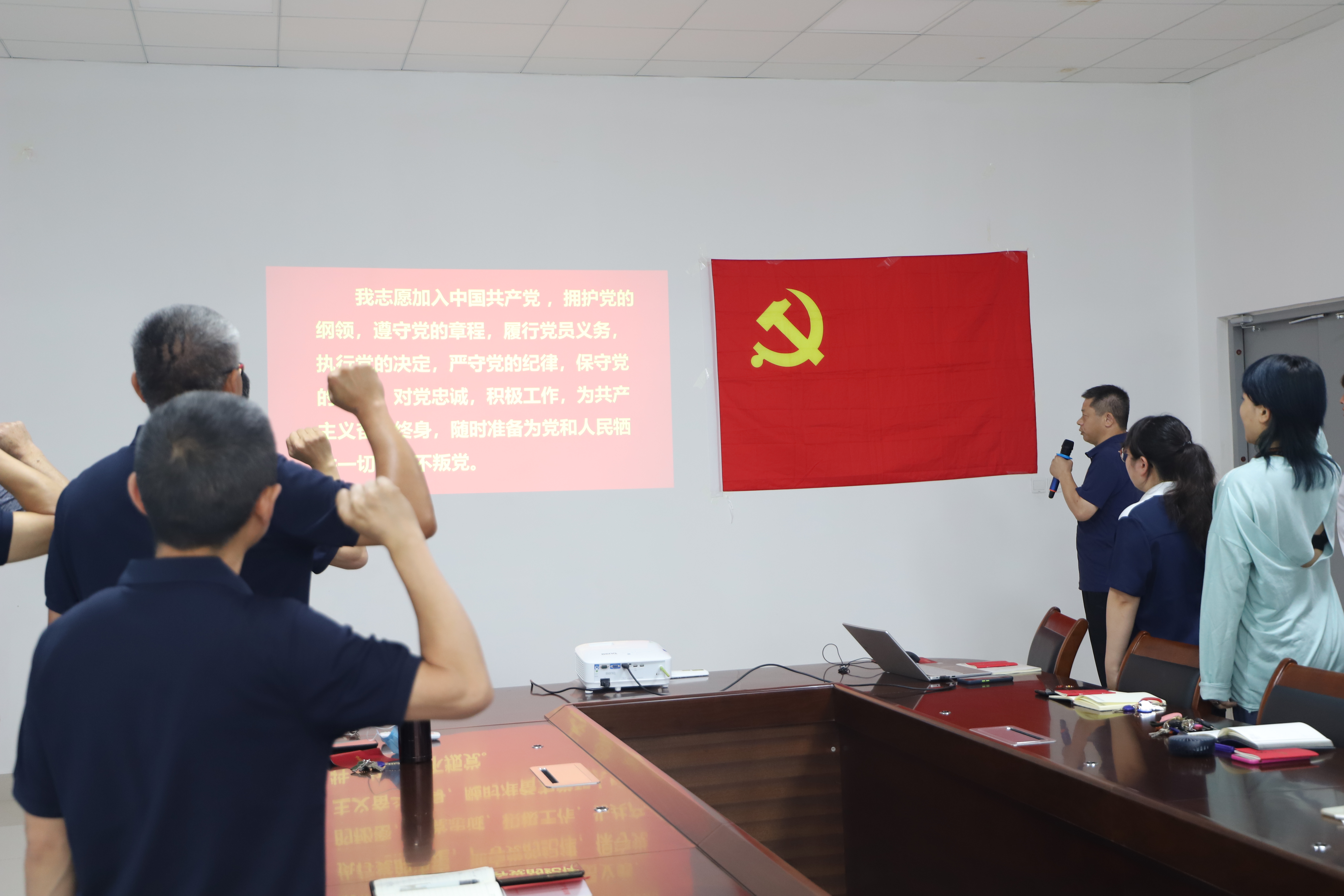 新发展党员入党宣誓和党员重温入党誓词仪式在雄壮的《国际歌》声中拉开帷幕。面对鲜红的党旗,由学院党总支书记张根清同志领誓,全体党员举起右手、紧握拳头,庄严宣誓。一句句铿锵有力的宣誓,表明了党员们的铮铮誓言和坚定决心。接着,学院党总支副书记谭俊超同志带领大家学习《中国共产党章程》,谭书记结合新《中国共产党章程》修订的背景和意义,详细解读了新《中国共产党章程》的内容变化,并结合工作实际,讲解了在新《中国共产党章程》指导下,开展党史学习教育的意义与方法。接着,大家共同观看了党史纪录片《征程》,更加深入的学习党的历史、传承红色基因、践行初心使命。最后,学院党总支书记张根清同志以“忠诚应该刻在共产党员的灵魂里”为主题,带领大家一起学习了习近平总书记关于忠诚的重要论述与讲话精神,告诫大家要不断提高政治判断力,坚决拥护党的领导,以实际行动践行共产党员的初心与使命。张书记要求全体党员要以此次主题党日活动为契机,不断提高政治素养,努力学习,认真工作,为高质量完成学校和学院各项事业做出自己应有的贡献。