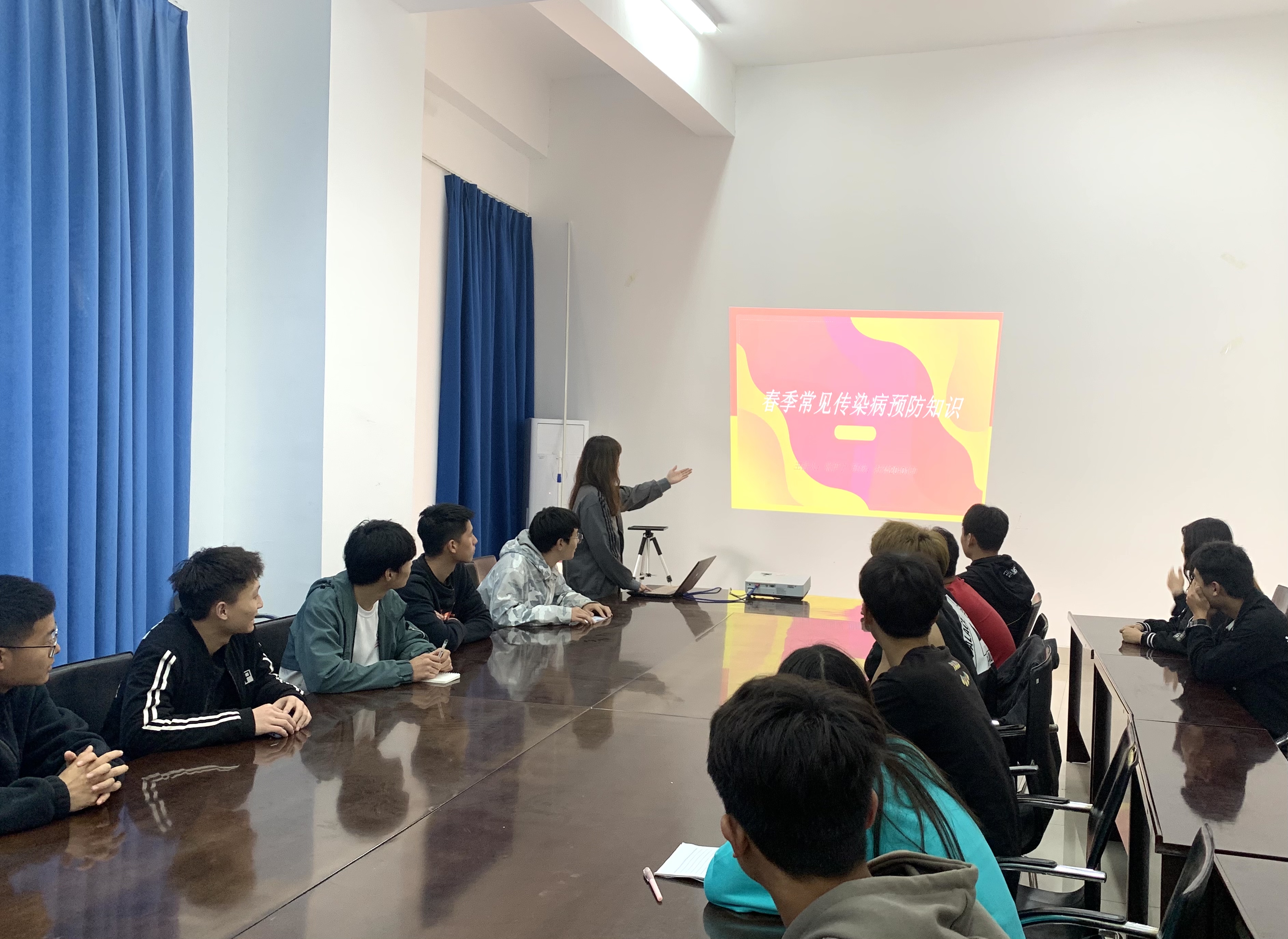 进一步加强大学生健康教育,提高学生文明校园意识,普及健康生活知识,3月27至29日体育学院在看台下学生活动中心125室组织各年级召开预防春季传染病主题班会