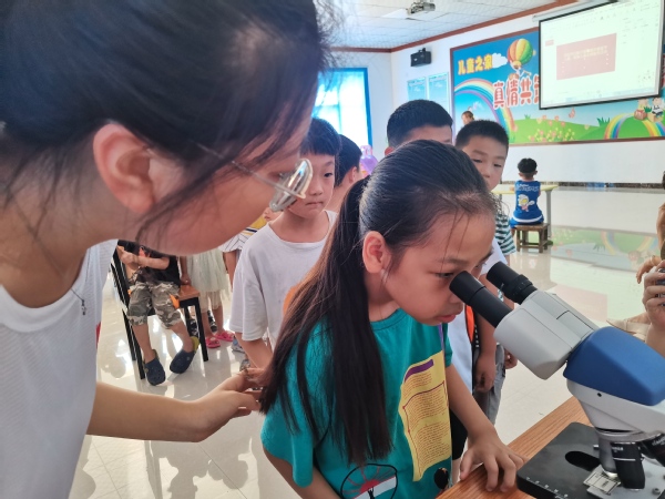 志愿者们利用所学专业知识,为孩子们讲解了关于食品安全与营养的小知识,告诫孩子们常见小零食和路边摊对个人健康的危害,帮助孩子们养成科学的饮食习惯。同时,志愿者们向村民和孩子们普及了反食品浪费法,教会孩子们一些常见的餐桌文明礼仪,孩子们纷纷表示要做勤俭节约的粮食小卫士,做文明有礼的小标兵。讲解完毕后,队员们还教孩子们用显微镜观察常见的食品微生物,孩子们对此表现出极大的兴趣,认真观察并相互描述自己观察到的图像,兴奋之情溢于言表。
