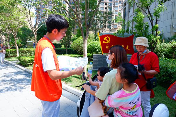 2021年7月9日,18新利直播 电气信息工程学院师生在河南省郑州市亚星盛世雅居社区开展国家资助政策宣讲活动。
