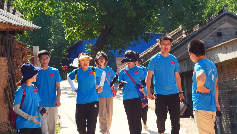 图为团队队员们在乡村老干部的热心讲解和引领下走进后上庄村