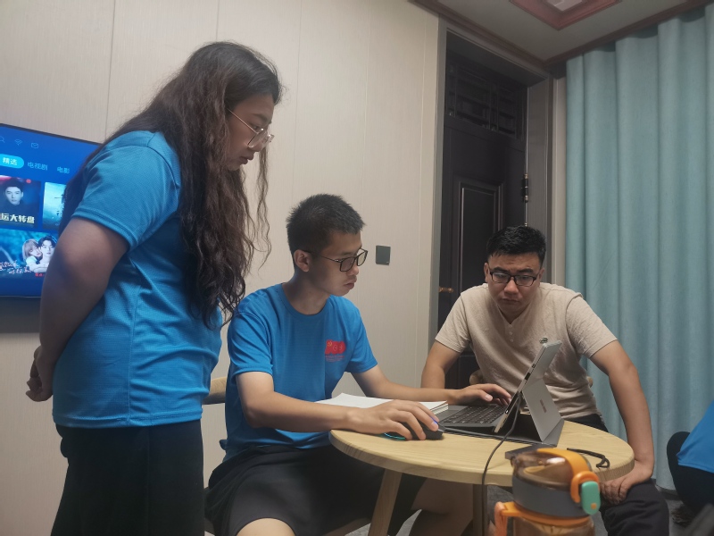 团队指导老师王潇博士带领队员们晚间梳理调研资料