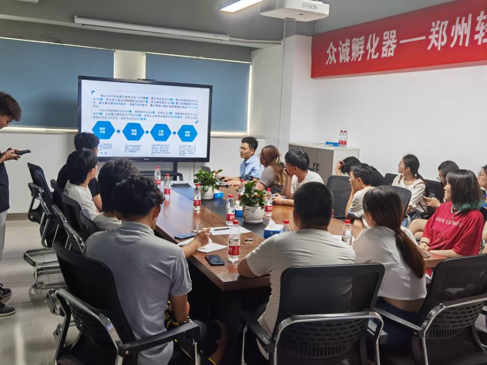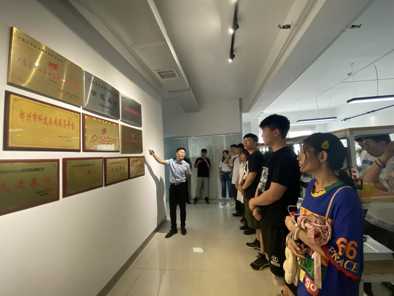 7月10日下午,实践小分队前往河南众诚企业孵化器有限公司进行参观学习。众诚孵化器作为河南省第一家国家级民营企业孵化器、河南省首批在科技部备案的国家级众创空间,为各类高新企业、大学生企业和新三板企业提供财务金融、法律事务、赛事指导等服务。在企业招商部经理李连升和我校2019届毕业生白福功的带领下,同学们参观了几家极具代表性的在孵企业,包括已成功融资5000万的河南京硕信息科技有限公司、与河南农大进行校企合作的幼儿教育农耕实训基地,以及旨在助力退伍军人再就业的河南善治人力资源服务有限公司等。