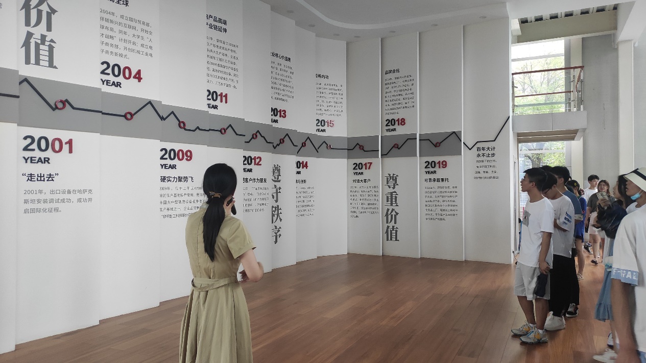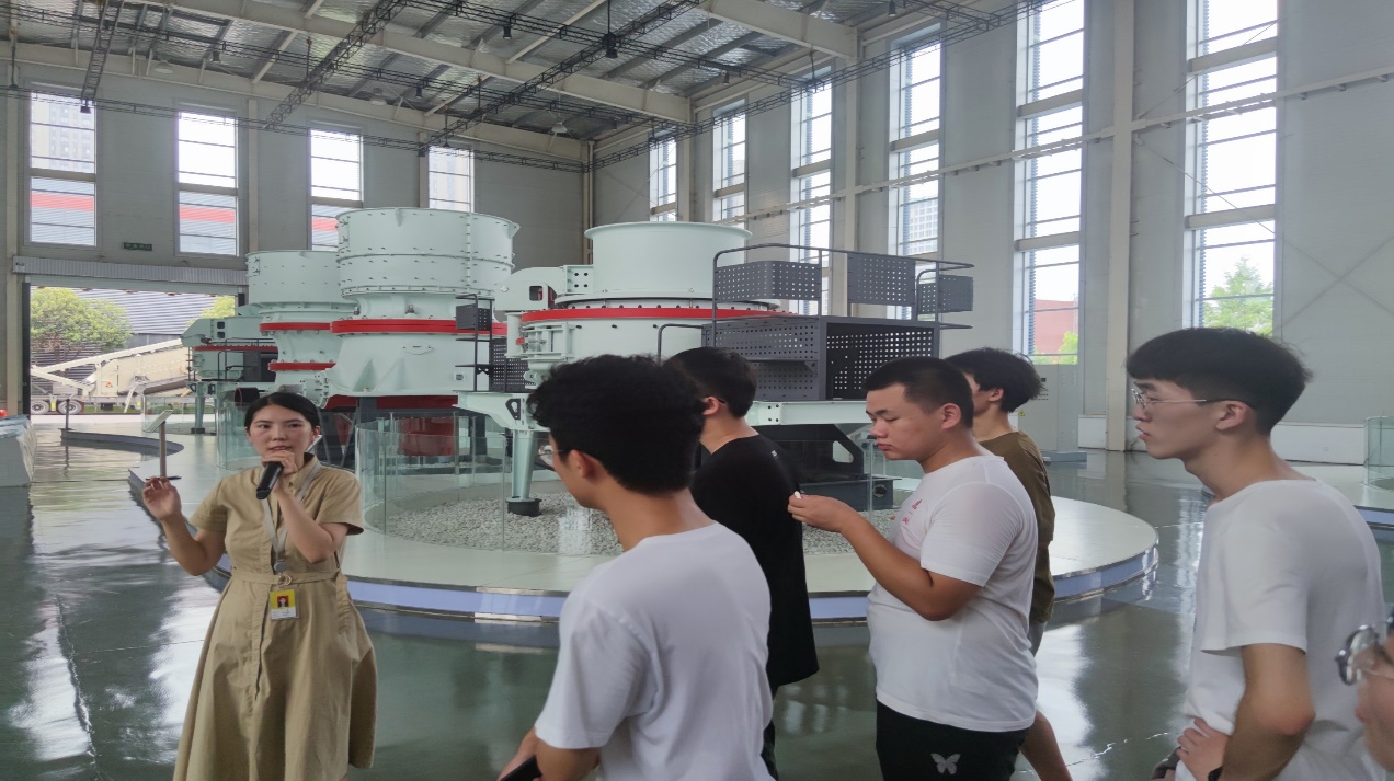 7月10日上午,实践团队前往黎明重工位于科学大道的总部办公大楼,企划部工作人员为同学们介绍了公司发展历程、企业文化和人才发展情况;在黎明重工人力资源负责人袁亚静的带领下,实践团队参观了企业研发中心和国际营销中心,了解了企业工作环境和海外市场开拓情况;随后来到了黎明重工的成果展厅,袁亚静经理针对各种设备及其应用方向进行了详细的讲解;最后,在做好安全措施的情况下,袁亚静经理带领实践小分队前往生产车间进行实地参观学习,更直观的了解了重工设备的制造过程及加工工艺。