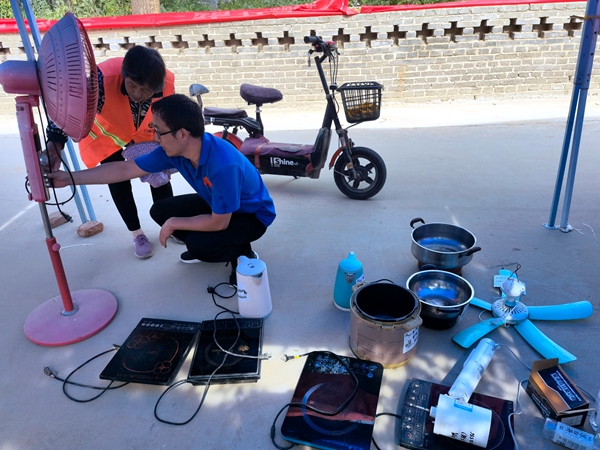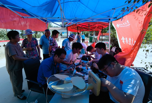 快看,18新利直播 维修家电的大学生又来了!“阳光电气”家电义务维修小分队一下车就引起了村民的注意,不一会就送来了电风扇、电水壶、电磁炉、电吹风等各类家用电器20余件。顾不上长途奔波的疲劳和烈日炎炎的酷暑,志愿者迅速投入工作,仔细检查电器部件,陆续解决了电源接触、线路断路、指示灯不亮等问题,并利用所学知识向村民普及家用电器日常保养及简单故障的排除方法、如何合理使用电器,延长使用寿命。今年是“阳光电气”家电义务维修小分队入驻清东村开展实践活动的第六年,队员们明分工、重协作、抓效率,顺利维修了60余件小家电,志愿者们扎实的专业知识基础、熟练的操作技能、耐心真诚的态度赢得村民的一致好评,用行动践行了当代青年的社会责任,用专业知识助力了乡村振兴发展。