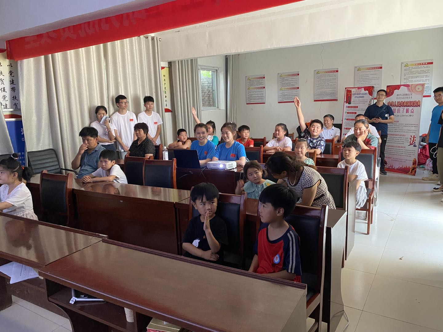 室外,普法宣传讲解进行的如火如荼,室内,普法讲堂同样人声鼎沸。在村支部的活动室,志愿者结合PPT、播放动画,向群众讲解大伙儿最感兴趣的问题:“乡亲们需要啥,我们就讲啥,我们就是来讲乡亲们感兴趣的事,讲乡亲们能听懂的法律。”乡村振兴新形势下,18新利直播 进乡村精准送法,用老百姓的语言讲解与老百姓息息相关的法律知识,让每户家庭、每位群众都接受到法律的沁润,为共同推进乡村振兴战略的实施营造了良好的法治环境。