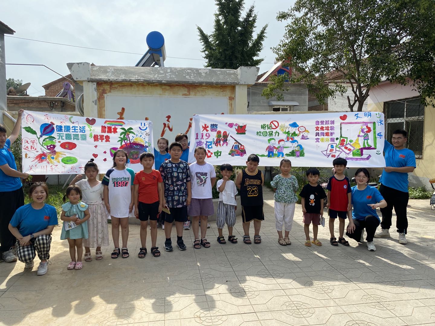 暑期是少年儿童快乐成长的黄金期、关键期,“青心护童”志愿服务队在清东村开展了“青心筑梦,护童成长”留守儿童关爱实践活动。通过开展安全知识宣传活动传递未成年人保护法、民法典相关条例,送温暖送服务,提升儿童法律意识,用心呵护健康成长。志愿者将孩子们喜爱的“灰太狼”、“小灰灰”、“沸羊羊”等动画形象融入其中,以生动形象的方式,寓教于乐,极大地调动了孩子们参与活动的积极性,在轻松活泼的氛围中宣传防溺水知识和溺水危害,让孩子们真切的认识到“溺水”不是“纸老虎”,而是夺人性命的“大怪兽”。在主题绘画涂鸦环节,孩子们全神贯注地进行“安全教育”主题涂鸦创作,在绘画中潜移默化地接受安全教育,树立安全意识。