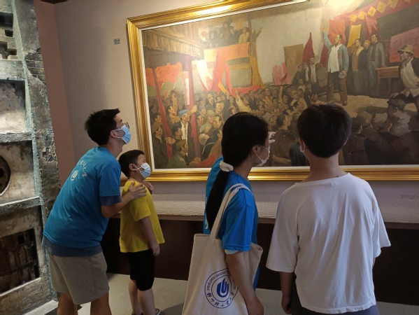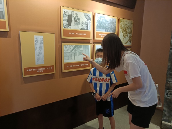 参观过程中,党员们偶遇同来学习参观的少先队员,志愿充当党史讲解员,带领少先队员们一起回望那段硝烟弥漫、波澜壮阔的历史,为他们讲解二七大罢工作为党领导的第一次工人运动高潮的顶峰,深刻体现了工人阶级是中国革命的主力军和领导者,中国共产党是真正的工人阶级政党。