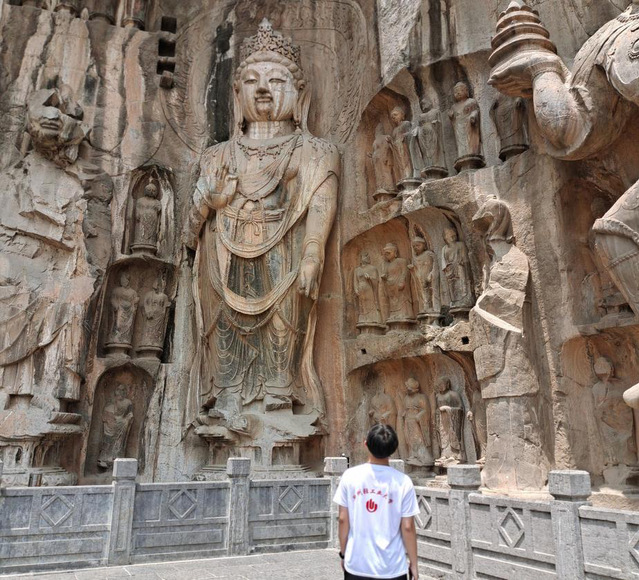 豫见黄河地标,探访世界文遗。队员们到达黄河寻访第二站龙门石窟,它是黄河流域文化的重要节点,是黄河文化的一颗璀璨明珠。队员们走近卢舍那雕像,赞叹精美绝伦的艺术之作,感叹古人惊人的智慧;仰望大佛,亲切地感受到石窟雕像的规模宏大;临近精美的佛雕,近距离欣赏龙门石窟卓越的石刻艺术,感受中华文化艺术的精品荟萃;欣赏历经千年嬗变的石窟,感受历史的厚重感。