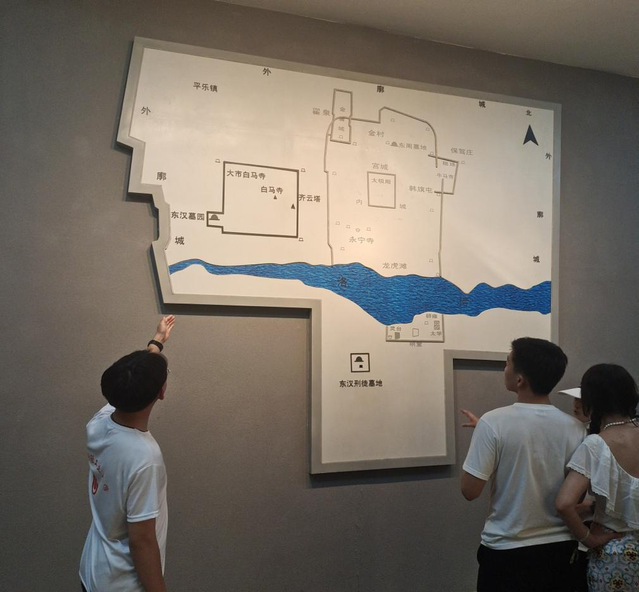 探黄河文化之干,领略黄河文明。黄河寻访第三站洛阳博物馆,队员们追寻十三朝古都的辉煌记忆,在讲解员的带领下,队员们认真学习史前时期、夏商周时期、汉魏时期、隋唐时期、五代北宋时期的河洛文明;欣赏开启中华文明智慧之门的河图洛书,“河出图,洛出书”,两幅神秘而富有魅力的古代文明图案;走进浩如烟海的历史文物宝藏,参观石器时代的粗砺、青铜时代的庄严、铁器时代的辉煌,触摸洛阳厚重的历史文化底蕴,队员们感受到了华夏民族生生不息的伟大创造力,一串串珠玑辉煌的成就,映照着河洛历史的天空,漫步河洛大地,追寻河洛文化,感受黄河风情,是河南一张鲜明的文化名片。