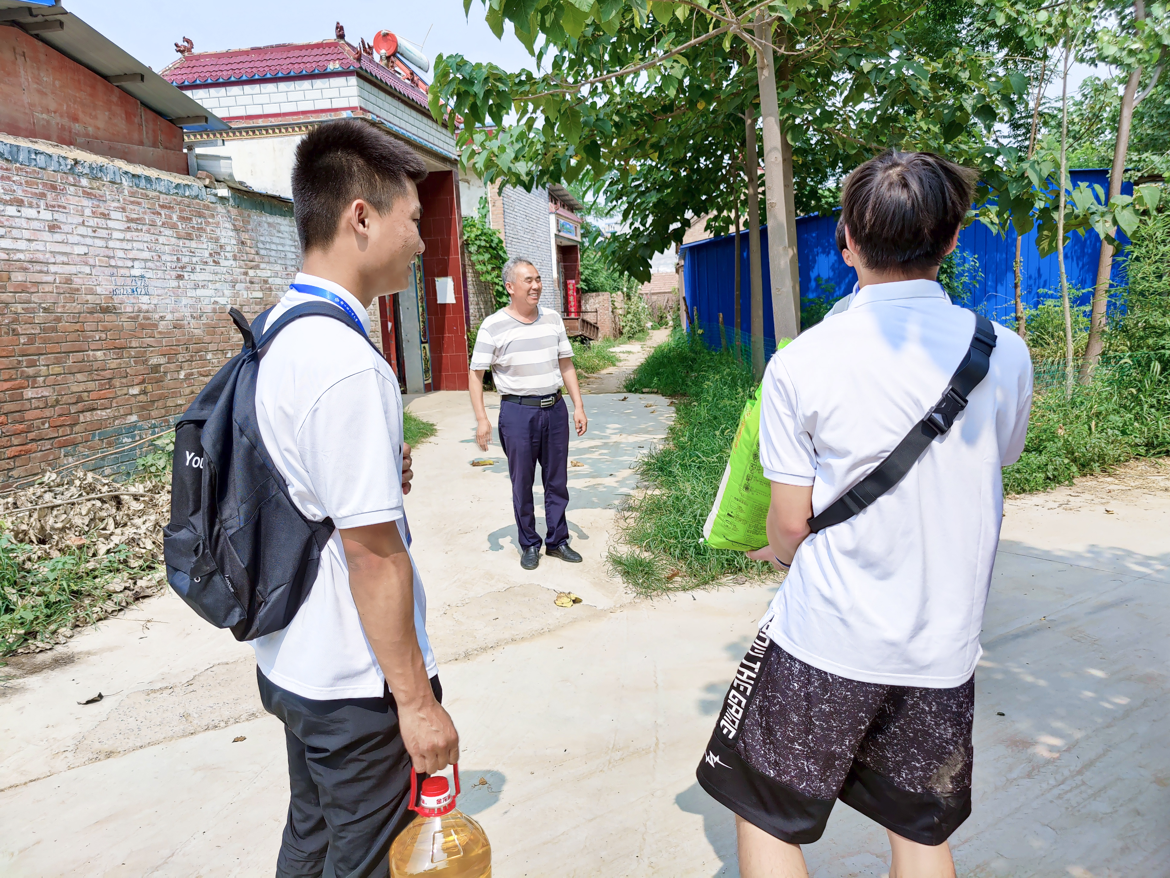 7月14日上午,宣传分队带着慰问物品走访了家住贺双楼村的助学贷款困难生学生家庭。走访中,宣传大使向家人介绍该生在校期间的优秀表现,并详细询问了其家人的身体状况、生活经济状况。通过心贴心地沟通交流,其父亲对我校资助政策给予的帮助表达了感谢。该生表示会更加珍惜大学时光,坚定信心,勤奋进取,以实际行动回报学校和家乡,踏实走好人生道路上的每一步。