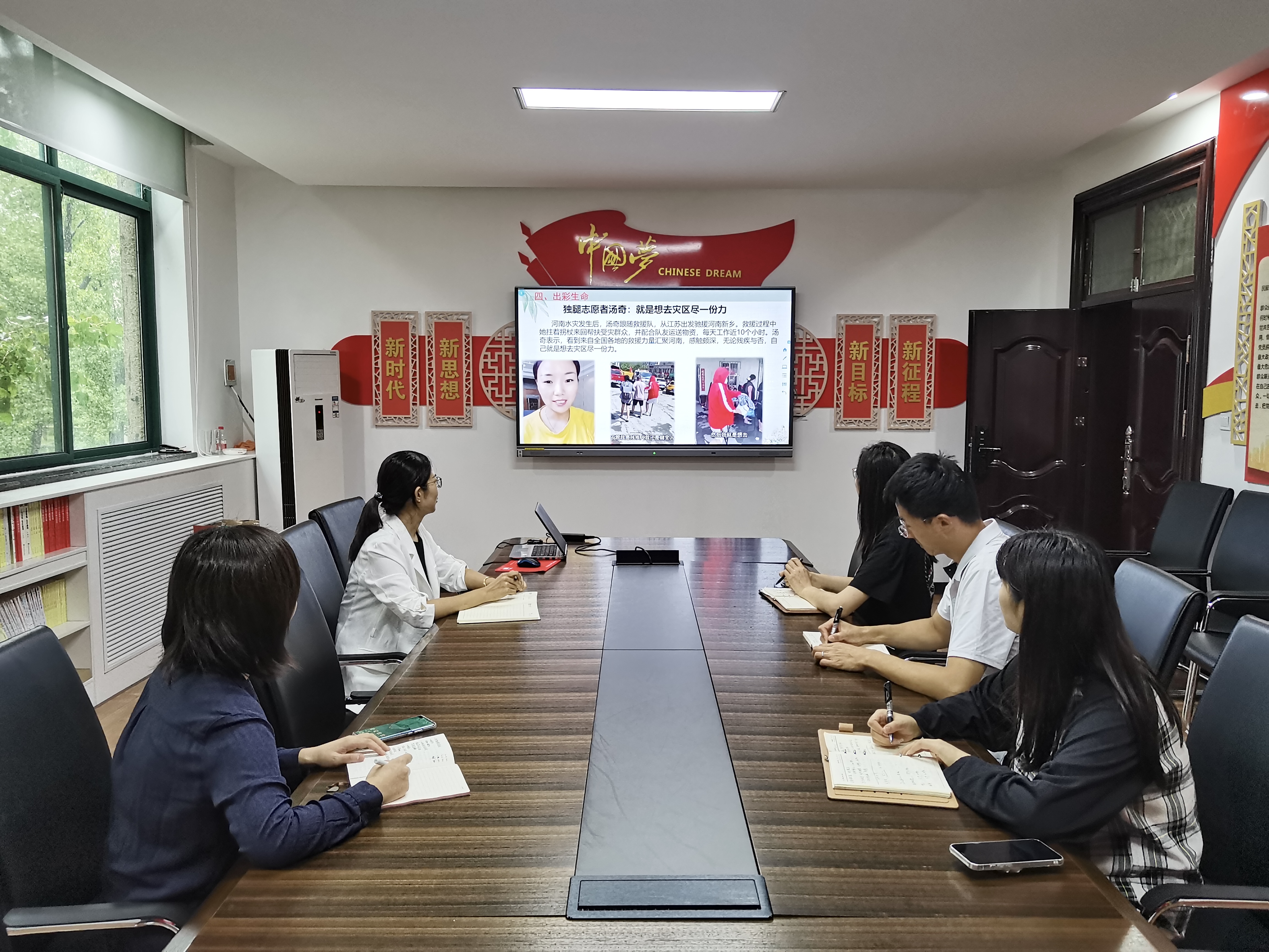 此次集体备课结合党史学习教育,分别以“守初心、担使命,上好防汛救灾和疫情防控主题思政大课”和“感党恩、跟党走,深入贯彻习近平总书记‘七一’重要讲话精神”为主题,在河南防汛救灾、灾后重建和疫情防控中挖掘感人故事,将育人元素贯穿教育教学内容之中。在近期河南“汛情疫情”叠加中,广大学子用行动唱响了“青春之歌”,“教育铁军”用选择展示了“师者榜样”,中原儿女用拼搏演绎了不屈担当,彰显了中国特色社会主义“集中力量办大事”的制度优势和中国人民众志成城、共克时艰的家国情怀。观看结束后,辅导员们纷纷表示,这次思政课集体备课教研活动收获颇多,要将本次活动所获的理论成果融入到思想政治教育当中,始终把立德树人作为根本任务,把灾难当教材,用大爱育人心,上好每一节思政课,当好学生的引路人。
