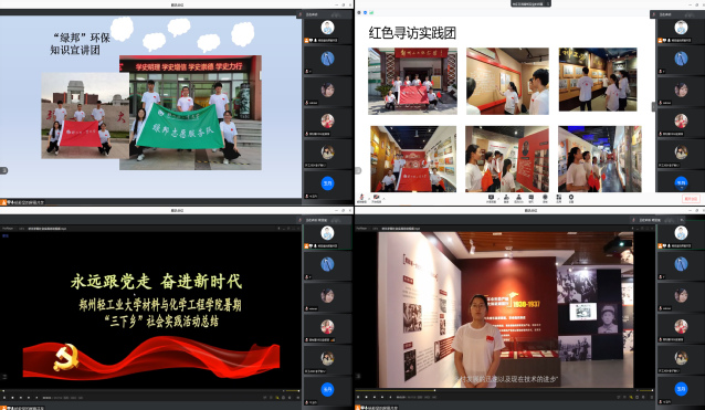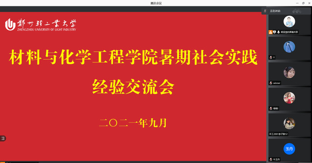 为深化党史学习教育,总结交流学院2021年暑期社会实践经验成果,不断深化社会实践活动影响,大力宣传先进典型,9月26日,材料与化学工程学院在线上举办了暑期社会实践经验交流会。学院专职团干杨亚皇、各实践团队成员及各年级代表参加会议。