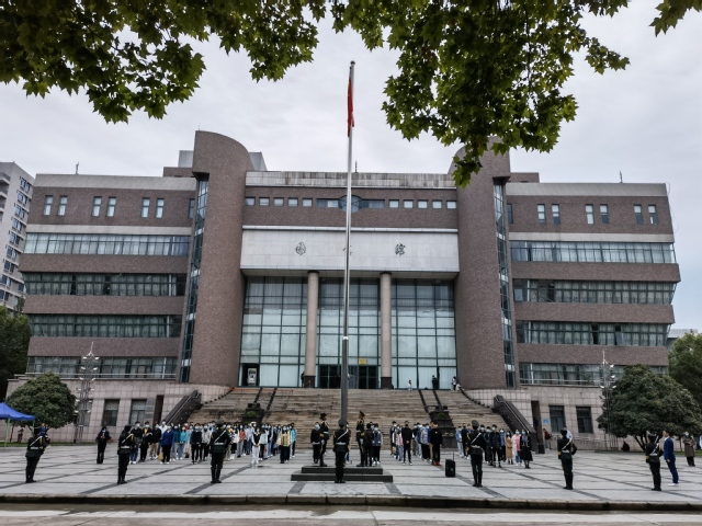 10月11日清晨,学校分别在科学校区主教楼广场、东风校区图书馆广场举行学生返校第一周升国旗主题教育,两校区300余名师生代表参加了此次活动。