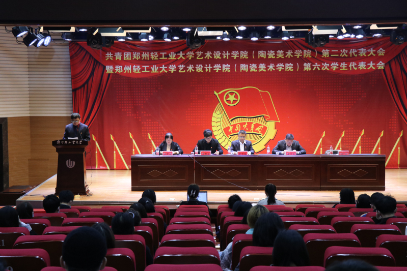 2021年10月19日中午,共青团18新利直播 艺术设计学院(陶瓷美术学院)第二次代表大会暨18新利直播 艺术设计学院(陶瓷美术学院)第六次学生代表大会在教一楼演讲厅隆重召开。校团委书记景志勇老师、艺术设计学院党委书记邵元珠老师、党委副书记贾红雨老师、团委书记孙丰老师、专兼职辅导员、全体团学代表等130余人出席会议。会议由艺术设计学院学工办主任霍庆媛老师主持。