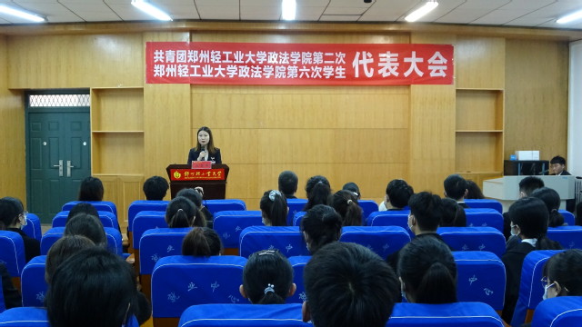 政法学院团委书记刘栩静老师代表上届团委作工作报告。她全面总结学院团委近年来的工作和取得的成绩,并分析了工作中存在的问题和今后努力的方向,明确提出了今后一段时间团委的工作重点和思路。她表示要坚持思想引领、不断加强团的自身建设,打造文化育人品牌、进一步营造积极健康的校园文化氛围,完善服务育人体系、进一步提高共青团的服务能力。曾昊同学代表上一届学生会作工作报告。报告回顾总结了学生会工作的成绩和经验,对今后的工作进行了展望,表示学生会将继续深化改革、开拓创新、砥砺前行,为学校和学院发展贡献力量。