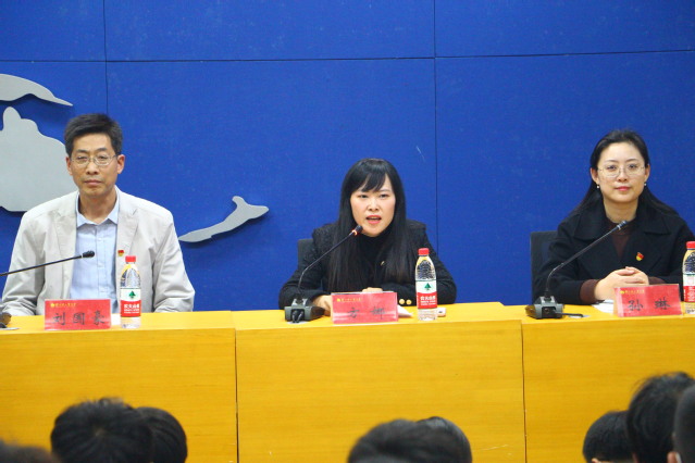 学院党委书记刘国豪老师发表讲话。他代表学院全体师生向大会的胜利召开表示热烈的祝贺,感谢校团委一直以来对学院团学工作的关心、支持和帮助,充分肯定团学组织在服务学生成长成才方面所做的积极贡献,并对学院团学组织提出三点希望和要求:一是要有“自信人生二百年”的志气,树立远大理想;二是要有“学不成名誓不还”的执着,练就过硬本领;三是要有“敢叫日月换新天”的担当,贡献青春力量。