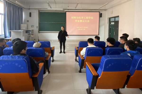 为加强学生学习过程管理,促使学生了解学业状况,及时干预和避免学生可能产生的不利于完成学业的问题,使学生能够顺利完成学业,11月4日中午,材料与化学工程学院在化工楼218室召开学业警示大会。学院党委副书记司丽娜、全体辅导员及受警示的学生参加了会议。会议由党委副书记司丽娜主持。
