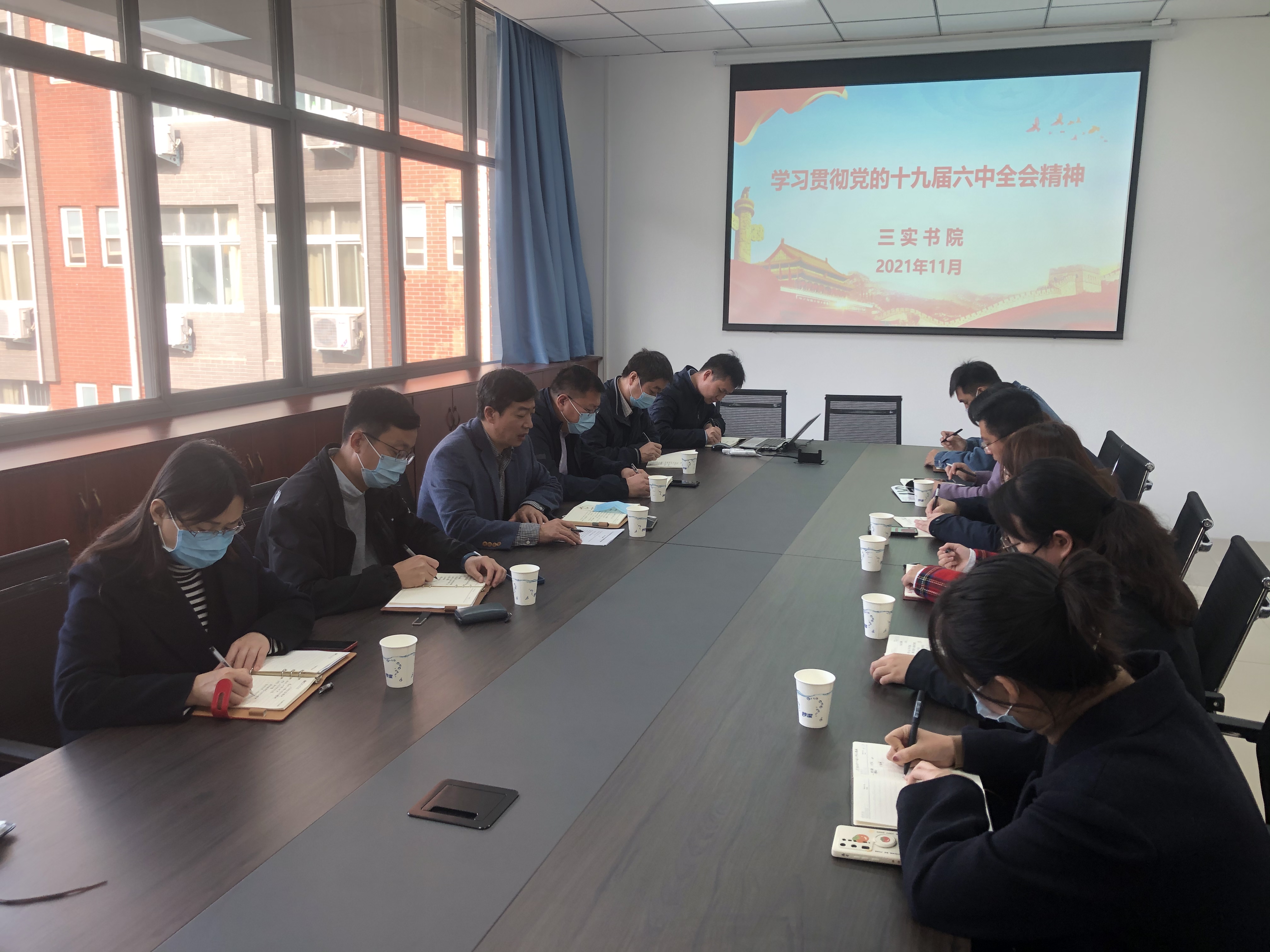 11月17日上午,三实书院组织召开“学习贯彻党的第十九届六中全会精神”专题学习会议,三实书院全体工作人参加会议,会议由三实书院党总支书记张世涛主持。
