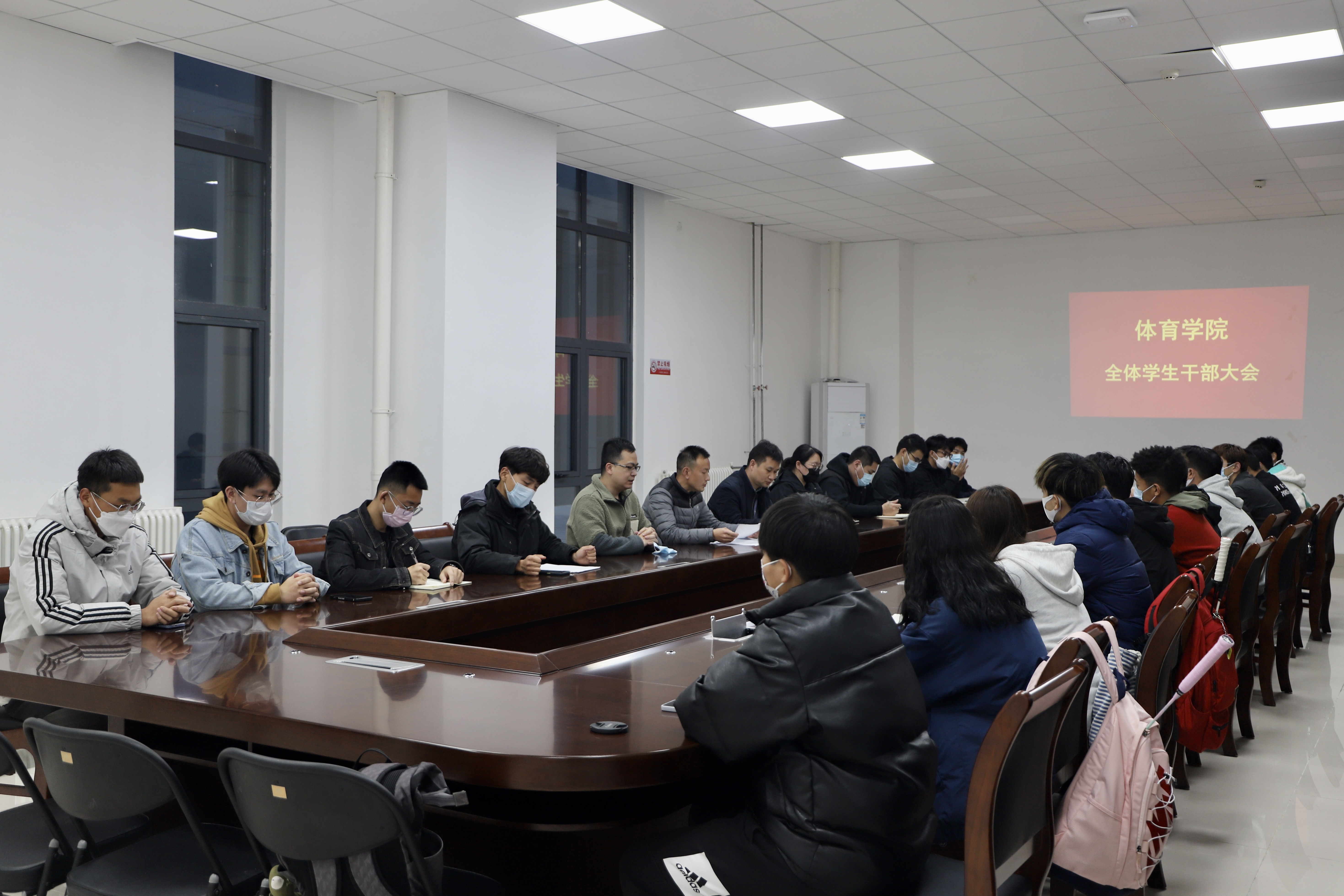 为进一步发挥学生干部的模范带头作用,11月18日,体育学院在体育馆会议室召开全体学生干部大会。体育学院党总支副书记谭俊超、团委书记石庆福、学工办副主任陈洁、副科级组织员张峰升、全体学生干部及2021级新生参加了此次会议。