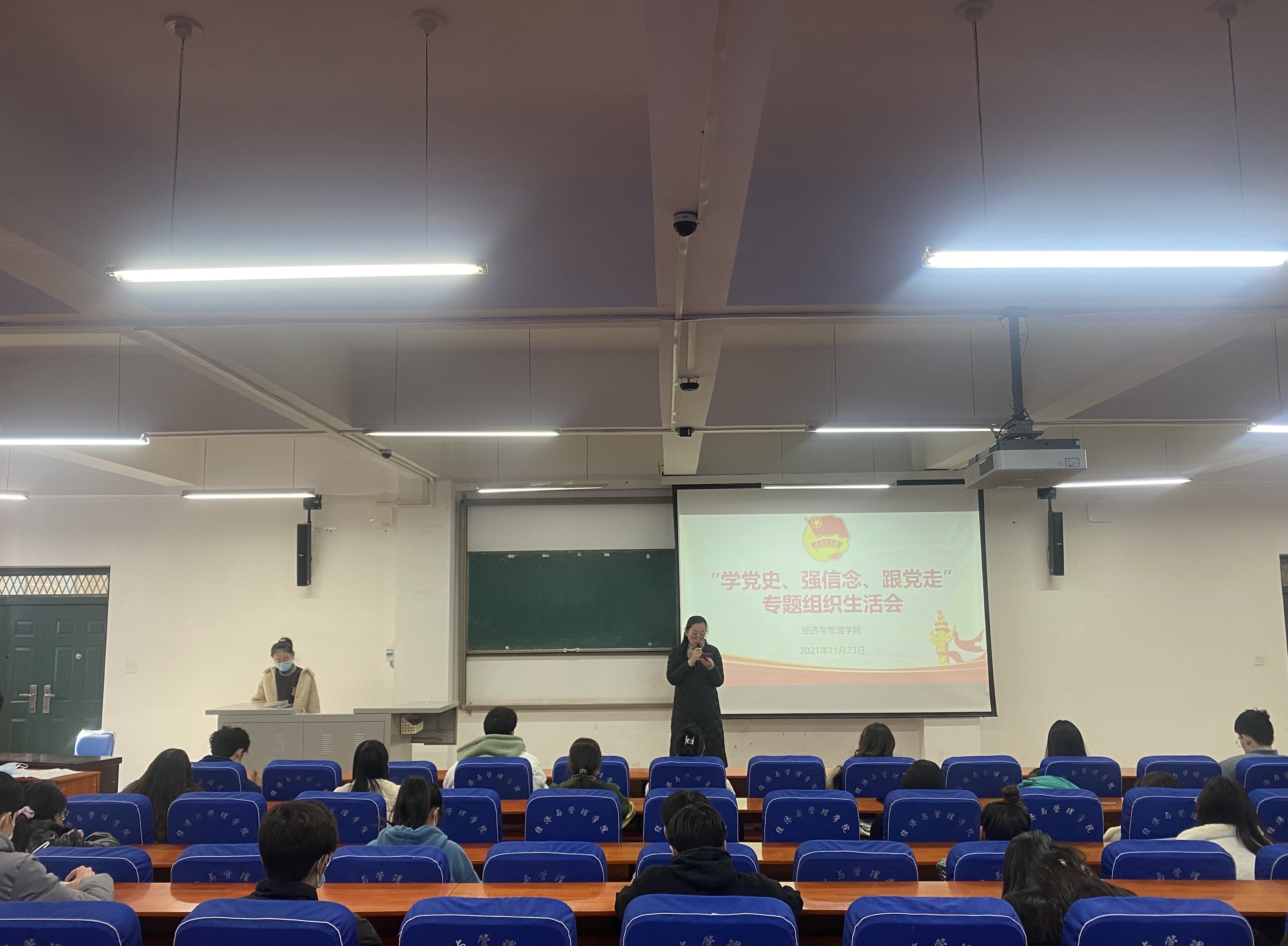 为深入学习贯彻习近平总书记“七一”重要讲话精神,紧密联系团员思想学习工作实际,交流学习体会、查找差距不足,深刻剖析原因、明确整改措施,推动党史学习教育走深走心走实。根据全团“学党史、强信念、跟党走”学习教育部署,经济与管理学院于11月23日中午12点在经管楼211室组织开展了“学党史、强信念、跟党走”专题组织生活会。学院团委书记姚少华老师、各级团支书和学院青马班成员代表出席了本次会议,东风校区21级本科生班长团支书在教三楼104室集中通过腾讯会议线上进行观看学习。