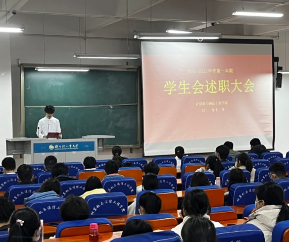 为了进一步深化学生会改革,提高我院学生会工作人员服务同学的意识和履职能力,11月30日,计算机与通信工程学院(电子信息工程学院)于计算机楼217召开2021-2022学年第一学期学生会工作人员述职评议大会。学院专职团干朱妍、全体专职辅导员教师、全体学生会工作人员以及部分学生代表参加了本次述职评议大会。
