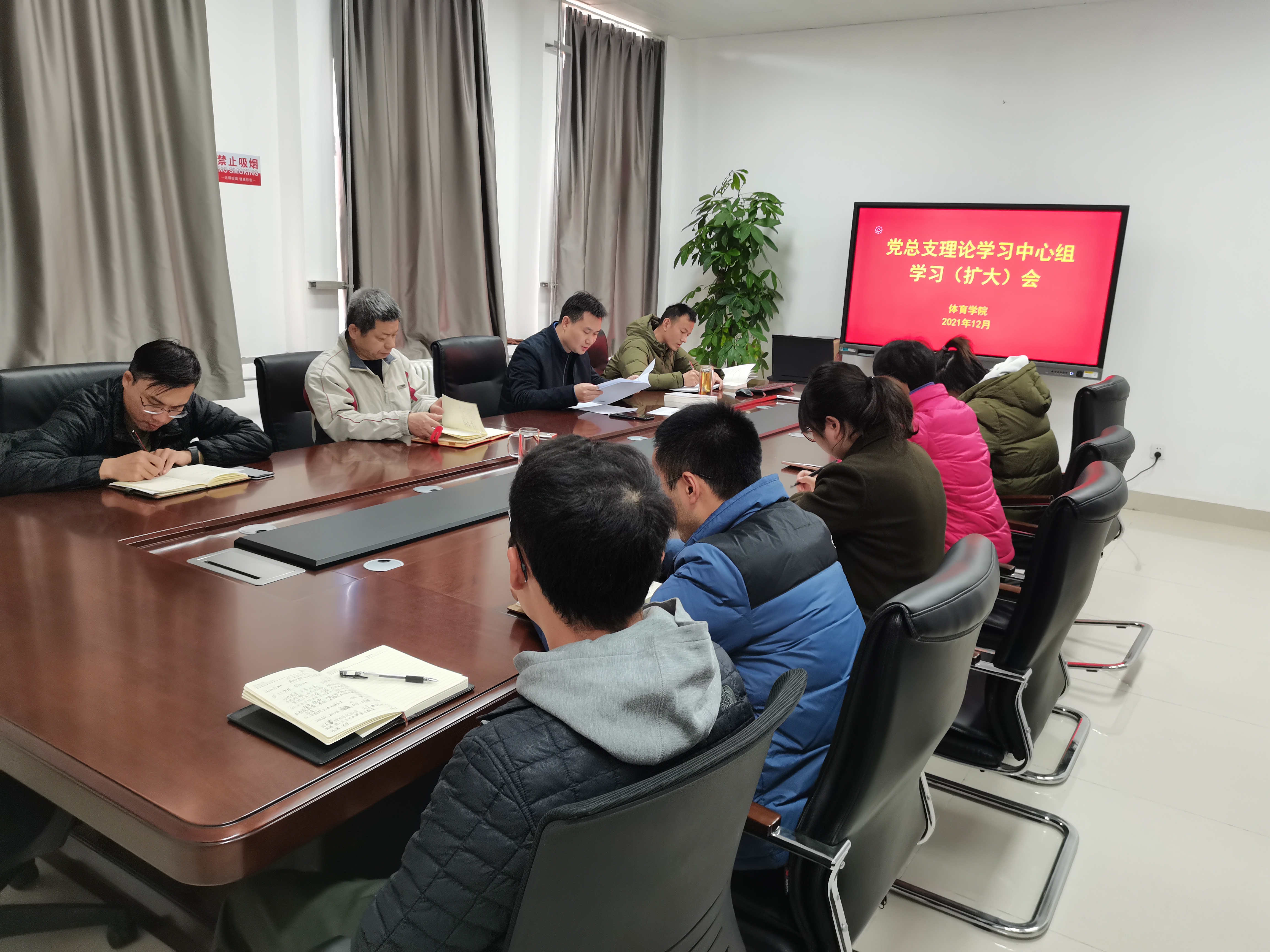12月2日上午,体育学院召开党总支理论学习中心组(扩大)学习会,专题学习党的十九届六中全会精神。学院党总支委员、各基层党支部委员和全体科级以上党员干部参加了此次学习。会议由体育学院党总支书记张根清主持。