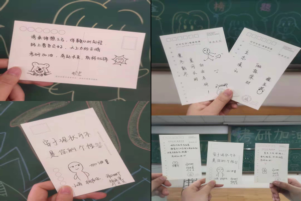 学院党委书记常亮代表学院向备战考研的学子表达了慰问,鼓励考研学生在考研复习的关键阶段积极准备,坚定信心。她叮嘱学生一方面要保持良好的学习状态,按照既定的安排理性备考,不骄不躁,持续发力;另一方面保持稳定的心态,遇到心情不适可以及时跟老师同学沟通,照顾好自己的身体,确保身心健康,这样才能够取得最后的胜利。毕业班辅导员也逐个送上祝福,亲自给考研学子送上学院老师和学生精心准备的“考研加油包”,鼓励考研学子以轻松平和的心态扎实备考,并祝福他们都能取得好成绩。暖心的礼物、殷切的期盼、温馨的嘱托、诚挚的祝愿,让我院考研学子备受鼓舞,动力满满。同学们纷纷表示要全力备考,牢记叮嘱,不负众望,用最好的状态迎接考试,用最好的成绩报答母校。