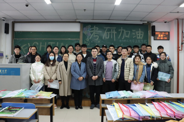 材料与化学工程学院一直高度重视大学生考研指导与服务,每年考研前夕都会开展慰问活动,在思想、学习、心理和生活等方面为考研学子提供全方位的服务和便利,确保同学们以饱满的热情投入到考研复习中,着力通过广大考研学生的示范效应在学生中积极营造浓郁的学习氛围,推进学院优良学风建设。