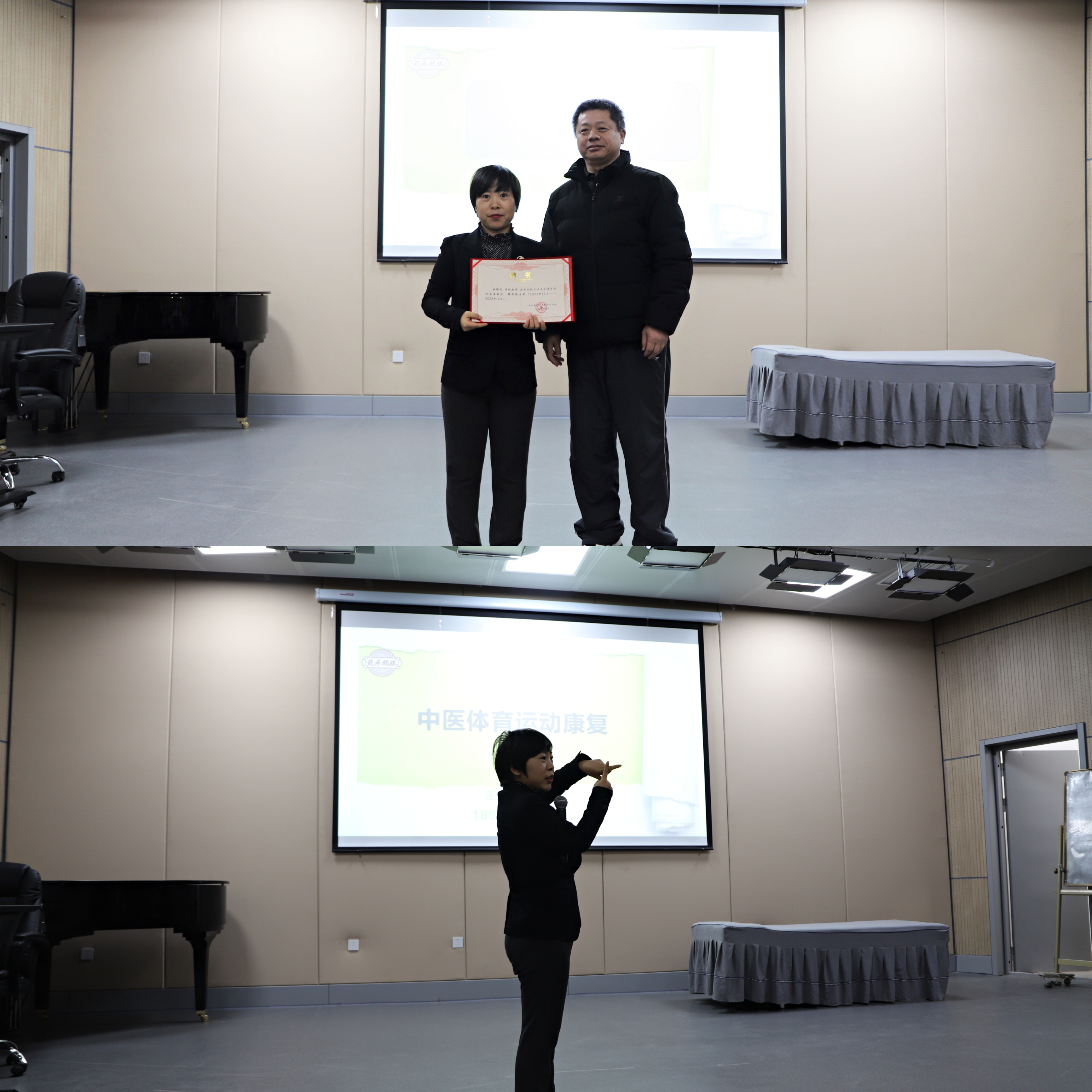 讲座后,体育学院党总支书记张根清代表学院为李税老师颁发了客座讲授聘书,李税老师还为部分教师和学生进行了现场康复示范。