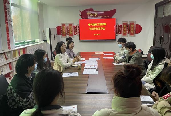 2021年12月中旬,电气信息工程学院举办“锦程计划”简历制作大赛,学院党委副书记万慧杰、就业专职辅导员廉琼就参赛作品对同学们进行针对性指导。