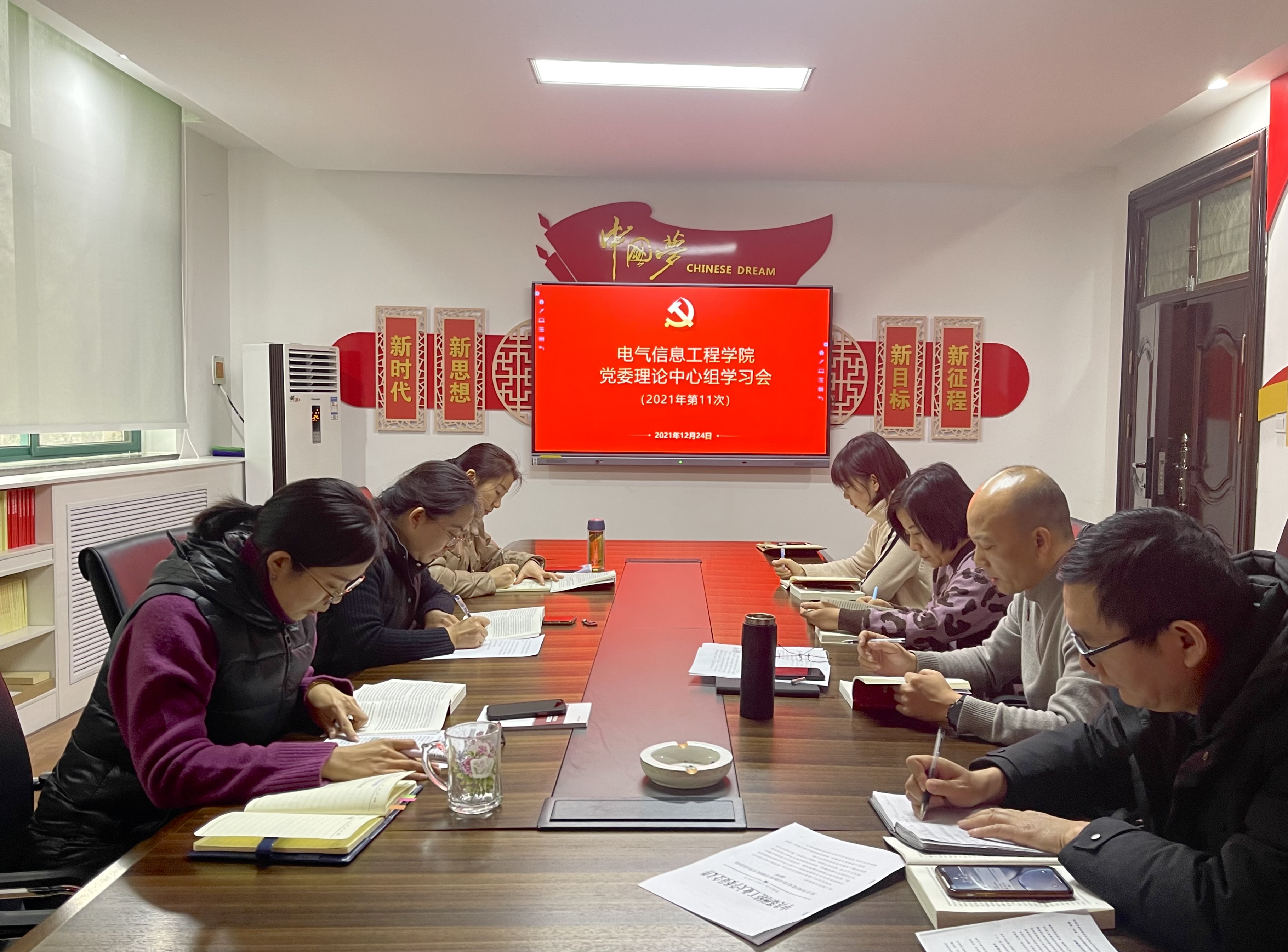 12月24日下午,电气信息工程学院在西二楼202召开党委理论学习中心组专题学习会。学院党委理论中心组成员参加。会议由党委书记张辉主持。