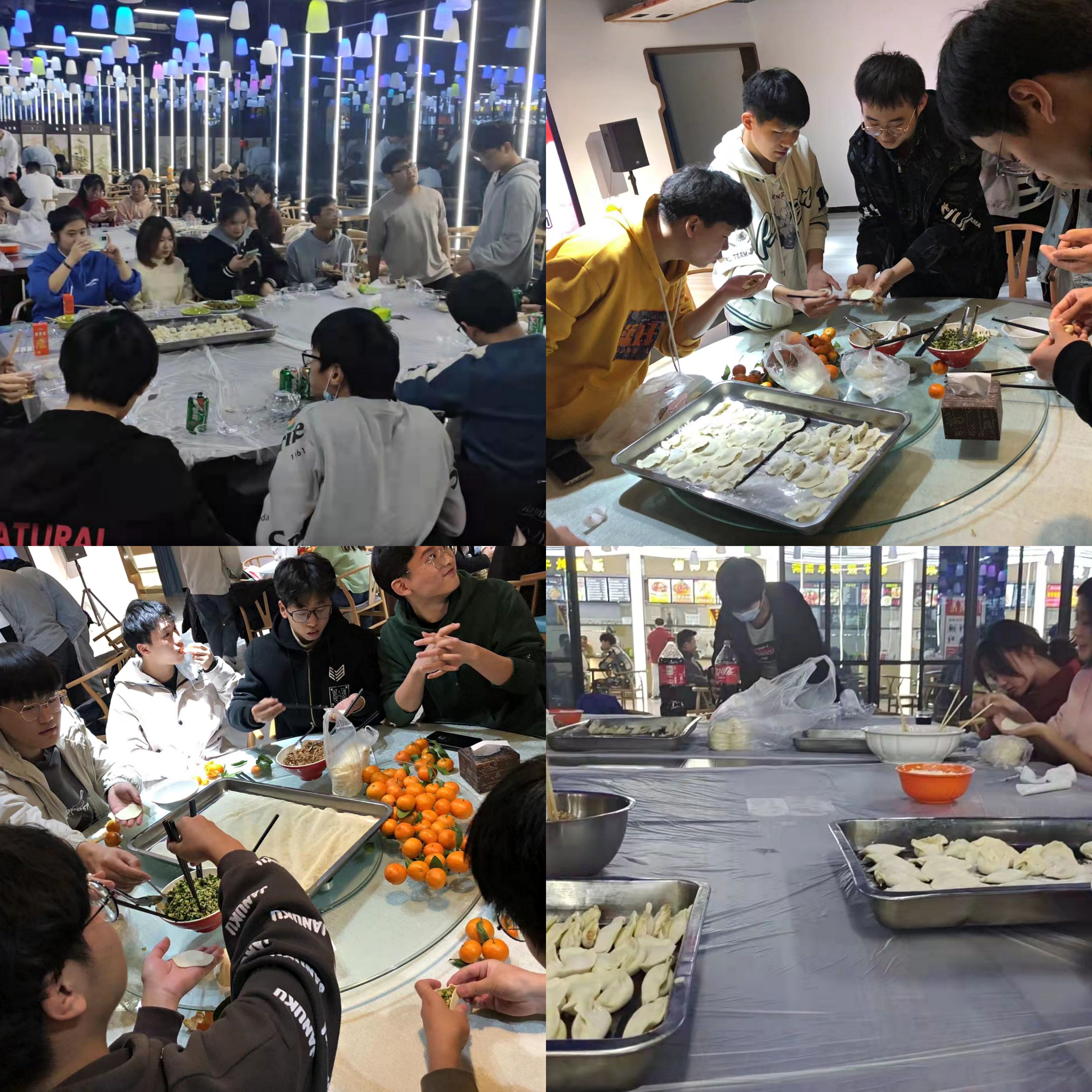 活动伊始,同学们发挥特长,分成擀皮组,包饺子组,活跃气氛组,大家分工明确,默契配合,虽然窗外寒意袭人,但屋内却热闹非凡,充满欢声笑语。过程中,大家热情高涨,擀面皮,包饺子,有说有笑,互相分享包饺子的经验,包饺子组还为同学们准备了惊喜—一枚硬币,吃到这枚饺子,寓意着来年会有好福气,同学们在温馨和谐的氛围中享受着快乐时光,每个人脸上都洋溢着美好的笑容,一起谈论着学习、生活乃至古今中外事。这次活动无形中拉近了每位同学之间的距离,虽然不在故乡,但班集体的温馨让同学们感受到了家一般的温暖。
