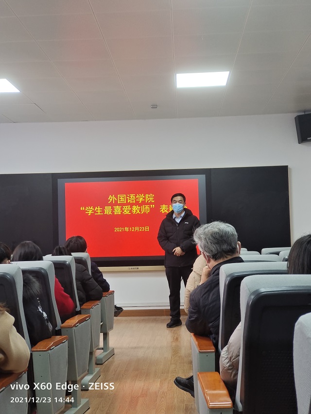 12月23日下午,外国语学院在东二楼209召开“2020年度学生最喜欢教师”表彰会。会议由张炎钰副院长主持,外国语学院全体教职工参加了会议。