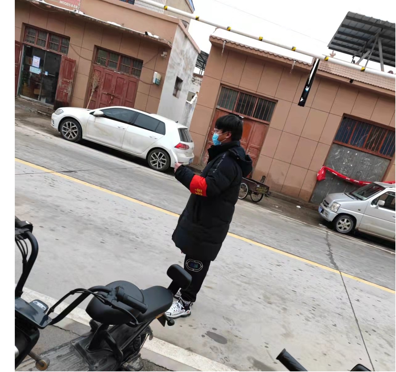 石飞阳,建筑电气与智能化专业2021级学生。家住河南省长垣市,在放假回到家之后,主动报名参加家乡组织的志愿者活动,成为了一名光荣的志愿者。他每天早上按时到达岗位认真值班,对进出村庄的车辆进行排查,对待车主认真礼貌。他协助管理人员发放通行证,并帮助人们填写疫情防控承诺书,还在村子里走访调查外来人员返乡相关信息。他认真负责的态度也被村里领导所认可。石飞阳认为:作为新时代大学生,应该为抗击疫情贡献自己的一份力量,每个人、每个单位、每个部门各司其职,国家才能有效运转,尤其是在面对疫情之时,更应该为国家防控力量做贡献,传递青春正能量。每个人都坚信,疫情终将会被打败。愿山河无恙,望岁月静好,待春暖花开,现人间美乐。