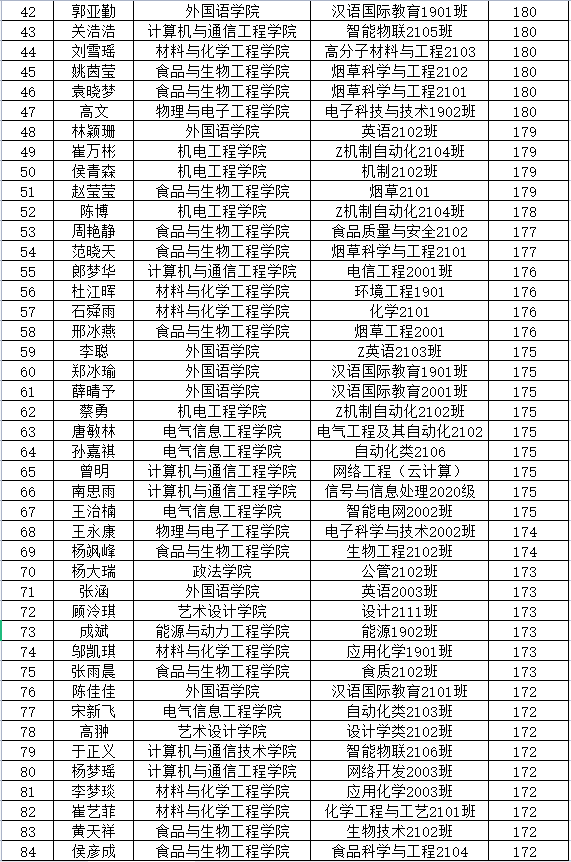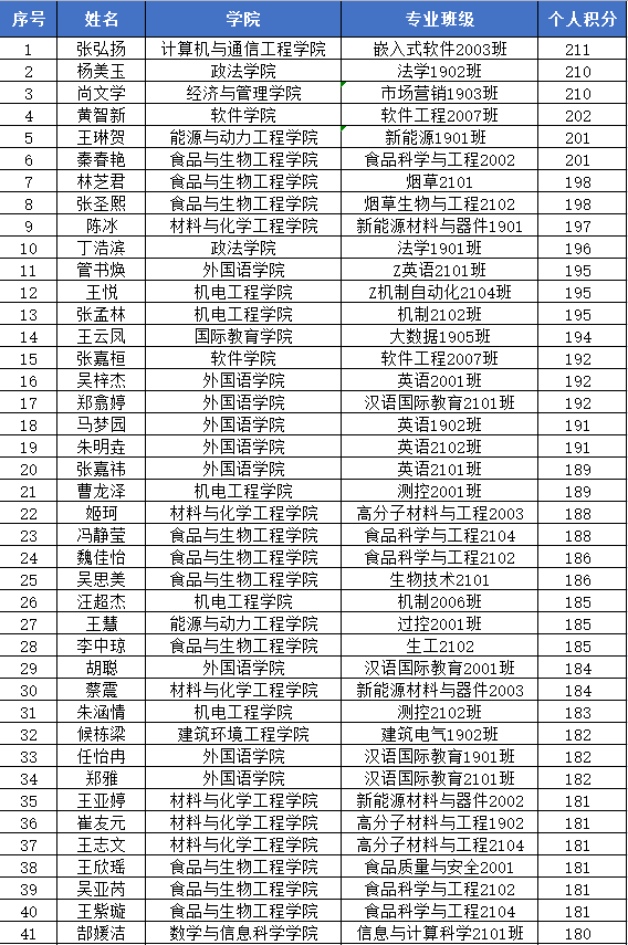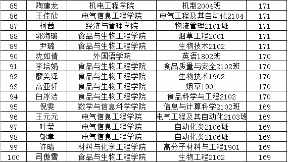 全校优秀个人(100名)